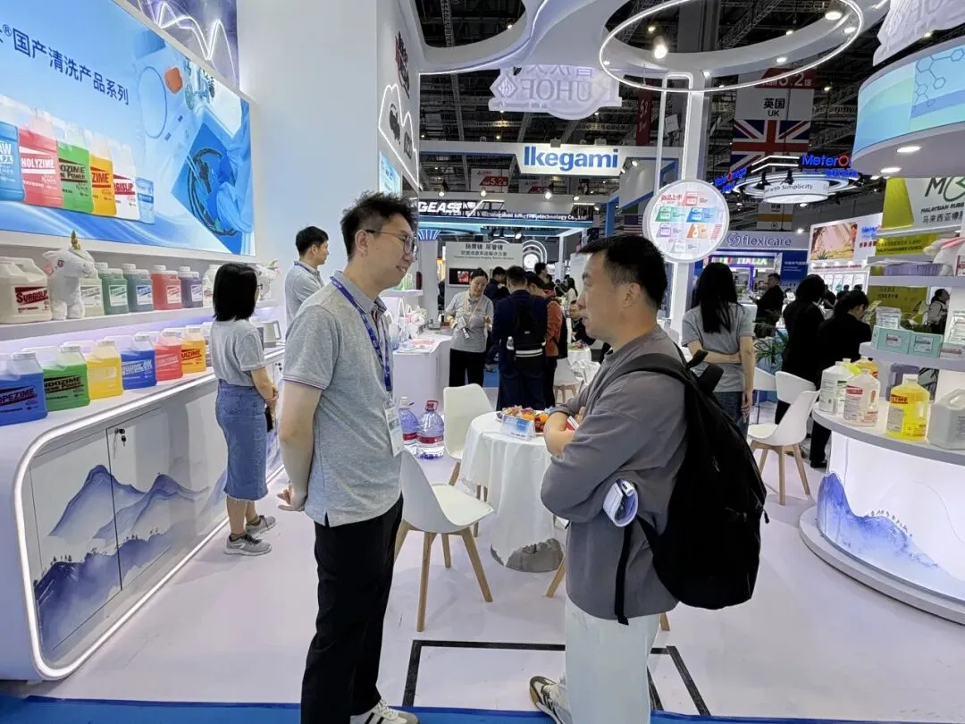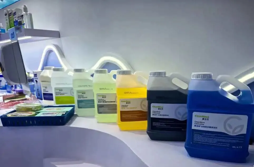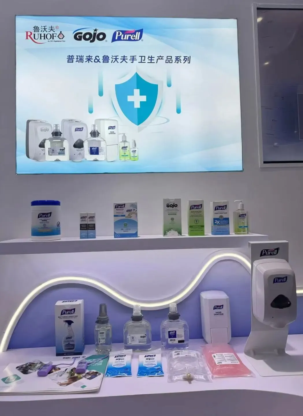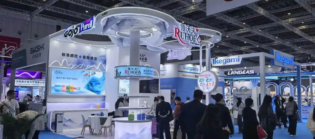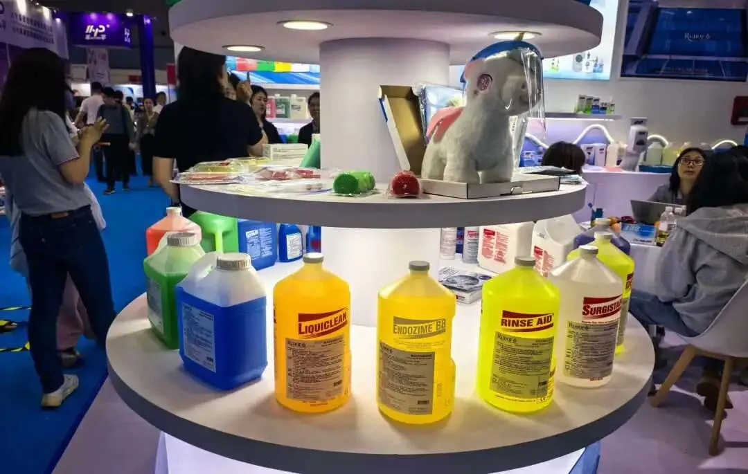 今年鲁沃夫以“净墨·新生”为主题亮相国际展厅,主题"以净为墨,泼洒医用洁净新境",水墨泼洒所达到"墨散 静显",来表达出鲁沃夫清洗剂和器械接触,即可达到清洁和油亮换新的神奇效果。