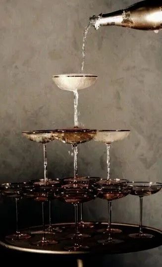 香槟:应先倒1/3杯,待酒中泡沫消退后,再往杯中续 斟至七分满即可