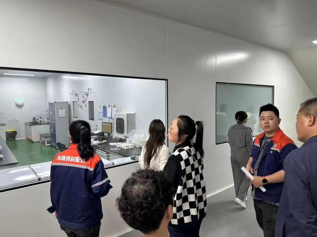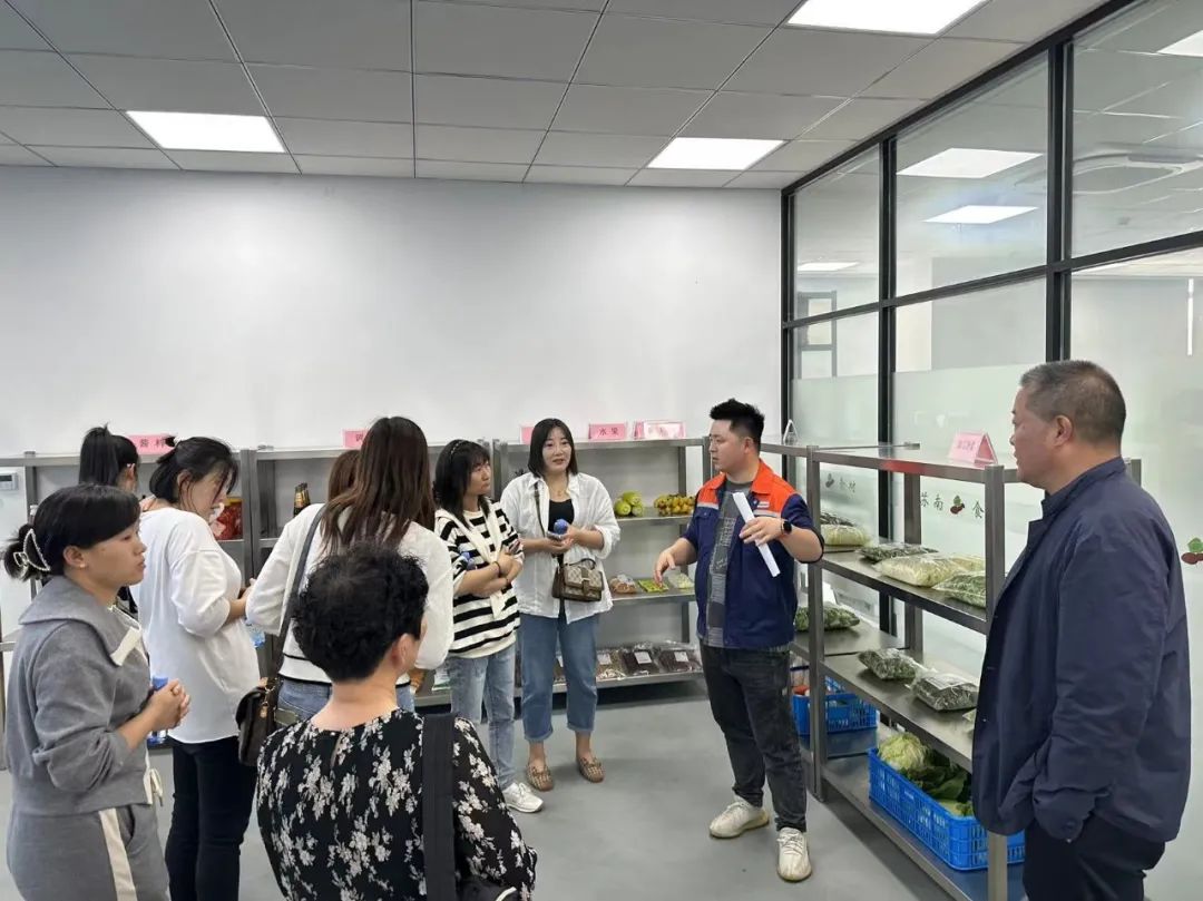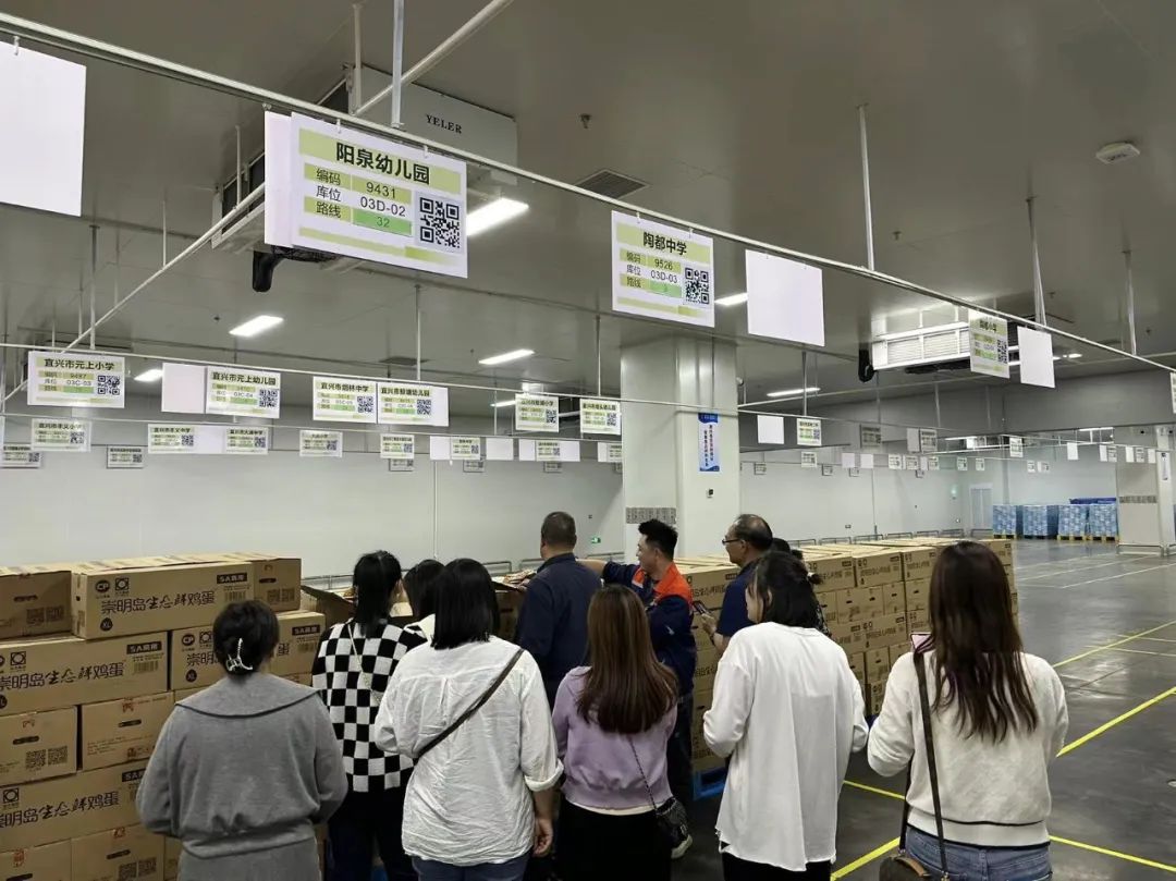 随后在郑经理的带领下,参观人员对配送中心的配送车辆、分拣区、周转仓库、周转筐回收清洗区、抽样检测室、原辅料库、冷链配送中心、全程监控室等区域进行参观,实样查看分拣食材。大家对苏南公司优质的运作流程连声称赞。