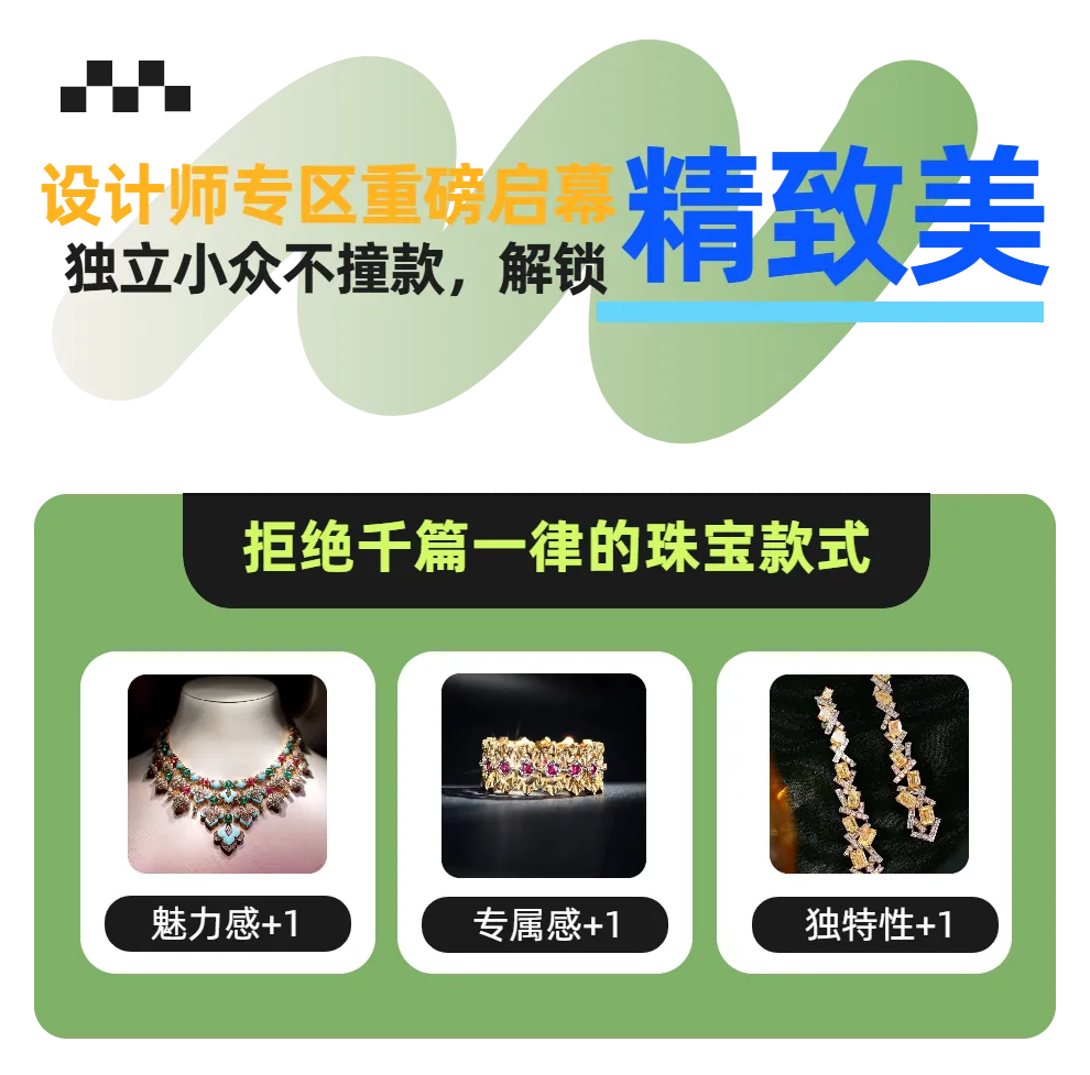 拒绝千篇一律的珠宝款式,本次展会专属设计师专区,汇聚台湾、香港及国内知名原创珠宝设计师,带来兼具创意、质感与美学的独家作品,每一件都独一无二。