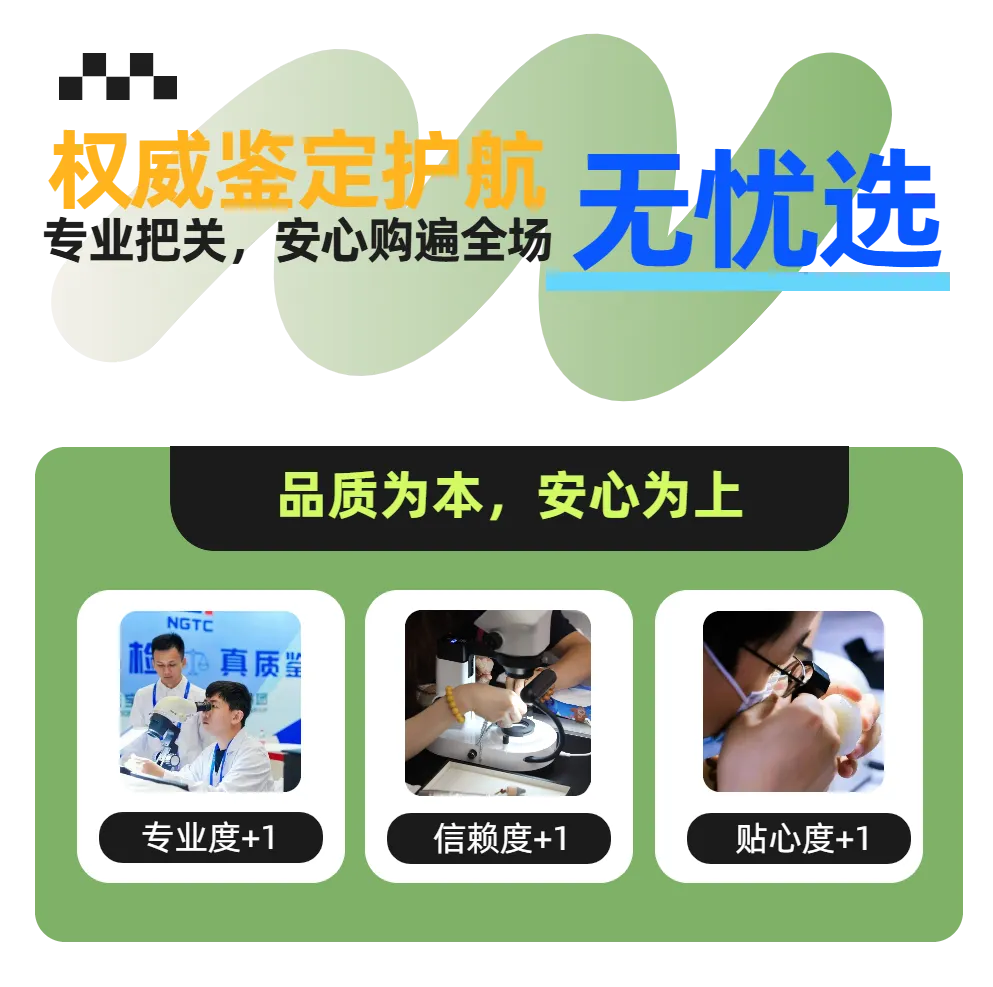特邀珠宝检测“国家队”——珠宝玉石首饰国检集团(NGTC)专家现场坐镇,设立免费鉴定咨询专区,为每一位观众提供免费鉴定服务,践行“先鉴定,后购买”的理念!