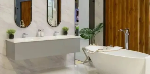 大理石作为一种经久不衰的材料,因其用途广泛且能与木材、金属和人造材料完美搭配而备受推崇。但需注意其重量;全大理石浴缸在设计前需要进行结构评估。为了顺应当下流行的淋浴趋势,您可以选择一块天然大理石用于人流量较低的区域,例如厨房或浴室墙面,而人流量较高的区域则可以选用石英石或仿大理石材质,从而降低投资成本。