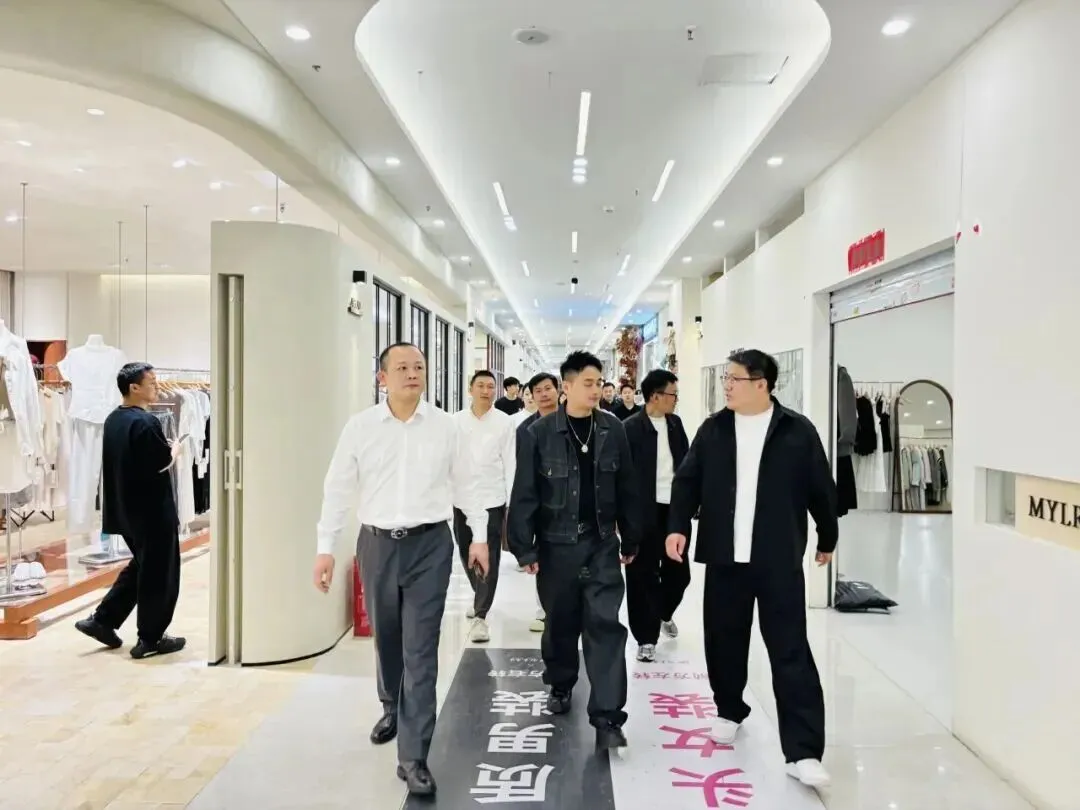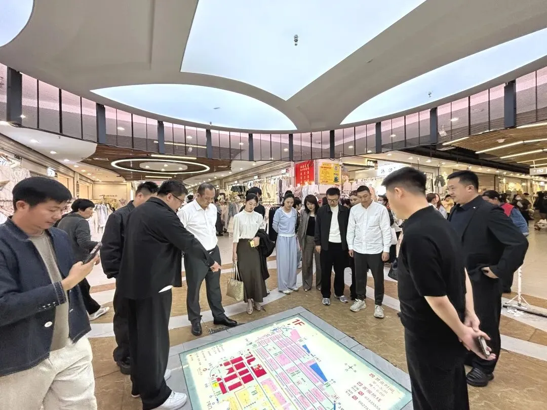 交流团一行深入银基广场各楼层,详细了解市场业态布局、品牌定位及上新节奏。走访过程中,交流团走进银基多家档口,近距离观摩产品设计与陈列,对银基的客群活力、商户创新能力给予高度评价。双方就产品风格、货源渠道等话题展开初步交流,现场氛围轻松务实。