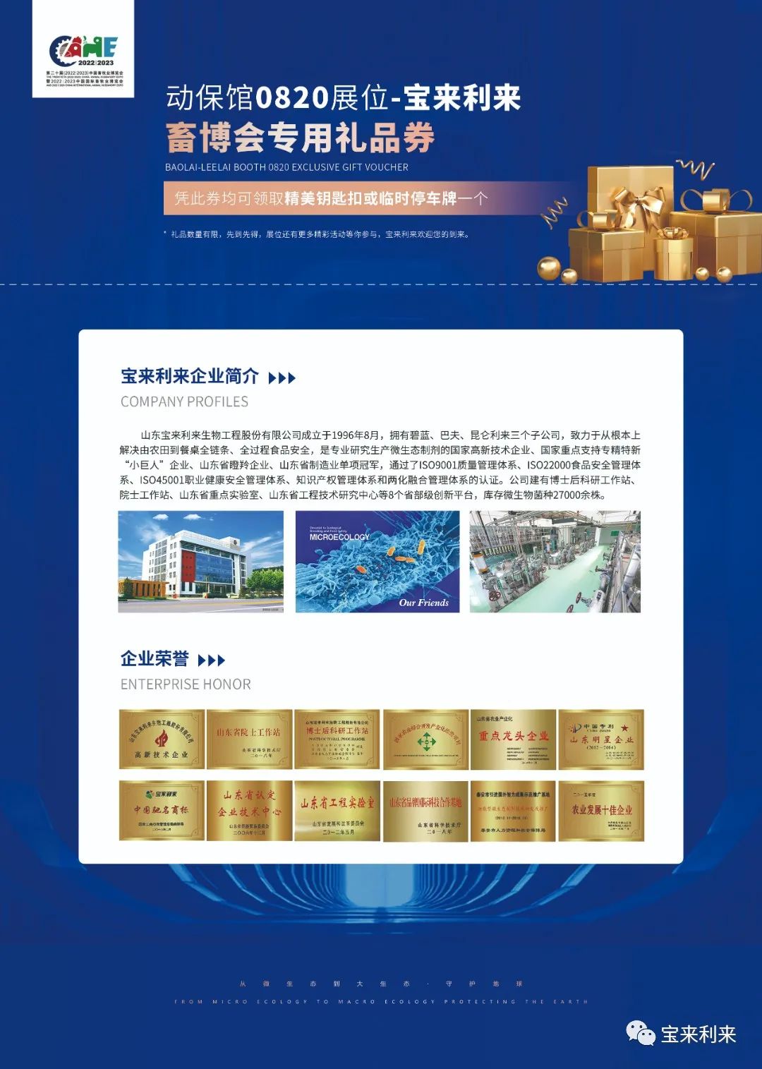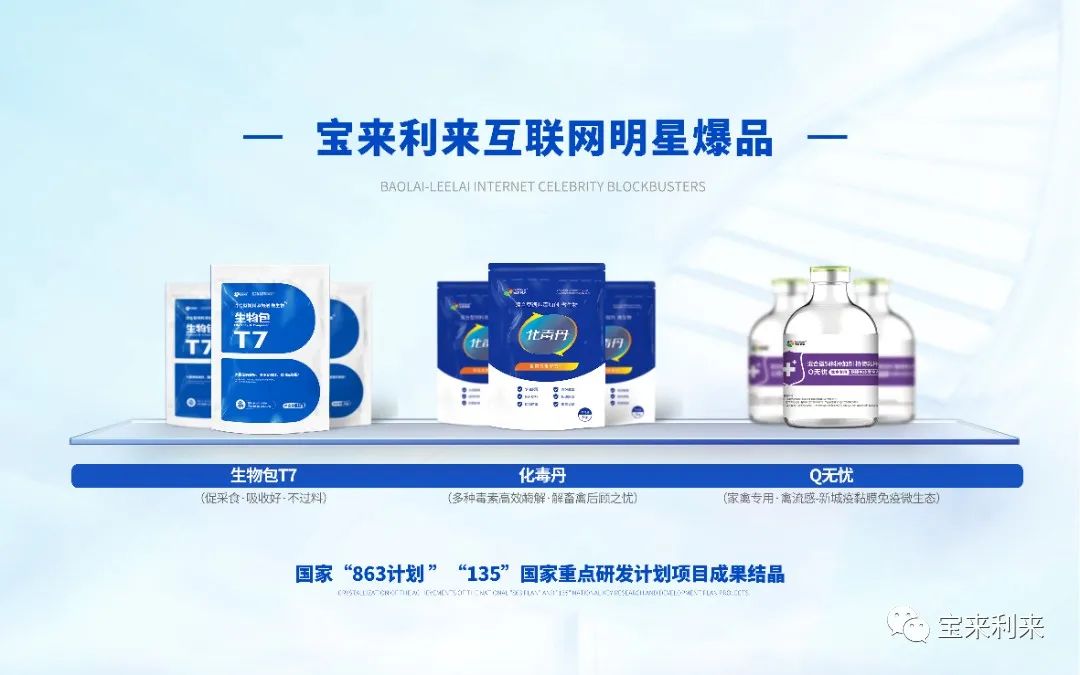 宝来利来作为国家高新技术企业,27年来始终不遗余力的致力于将研发成果转化为应用技术,最终开发成高性价比产品并形成客户端的产品及技术解决方案,着力打造全球黏膜免疫抗感染微生态创新平台。展会当天,宝来利来将携近20款公司爆款,展示给畜牧业的朋友们。