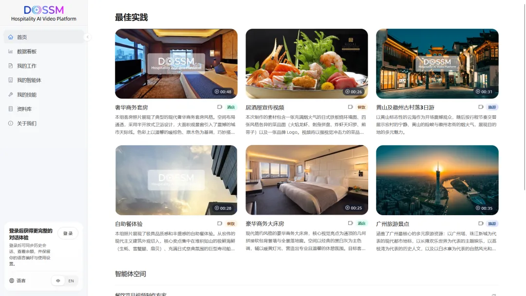 为了让 AI 真正成为酒旅行业短视频营销的生产力,问途专为酒店与旅游业打造的 AI 视觉创意引擎——DOSSM正式在www.wintour.net上线,让高品质视频内容进入确定性量产时代。让原本需要一周的拍摄剪辑,缩短至一小时内的对话产出。
