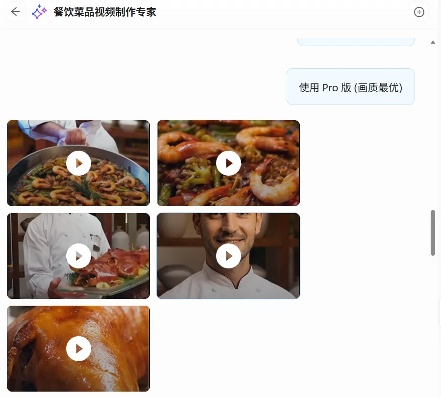 平台接入各类主流大模型,自动基于视频要求切换选用模型,生成分镜视频片段,如果某一个分镜不满意,继续指挥DOSSM优化。