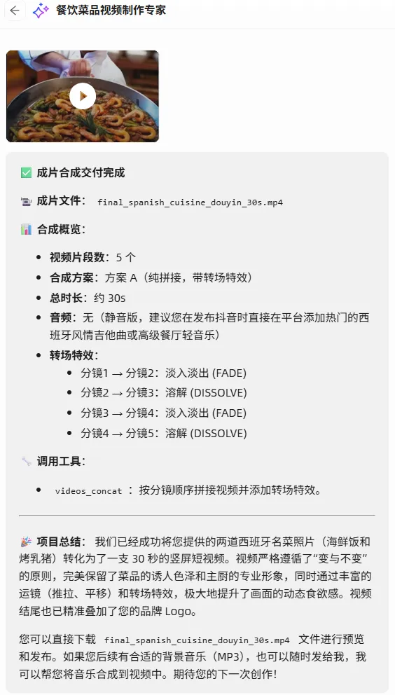 分镜确认完毕,一句话回复:合成,自动生成最终成片,无需剪辑。