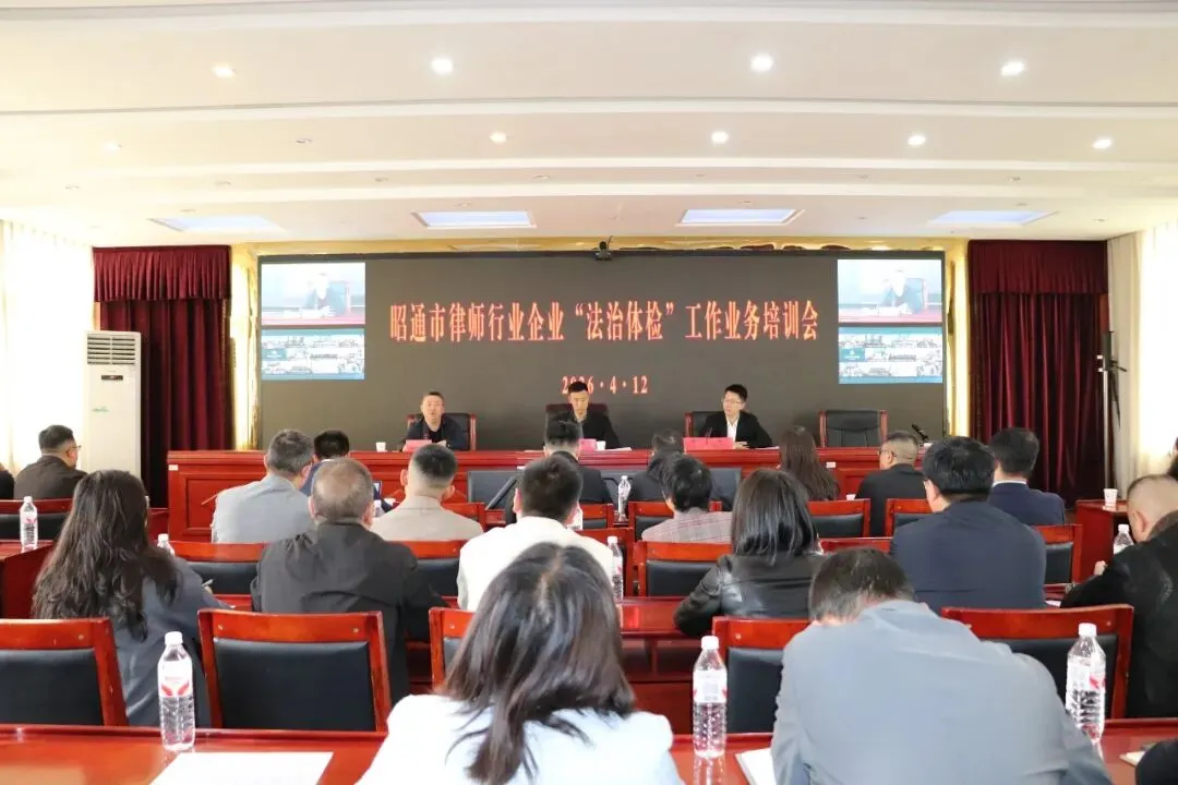 为认真贯彻落实市政府惠企实事实施方案要求,扎实推进企业“法治体检”工作,高效助力企业排查风险隐患、堵塞管理漏洞、降低法律风险,提高依法经营管理水平,2026年4月12日,昭通市律师协会组织召开企业“法治体检”工作业务培训会。会议以视频形式覆盖市、县两级,设主会场于昭通市司法局5楼会议室,各县(市、区)司法局设分会场。