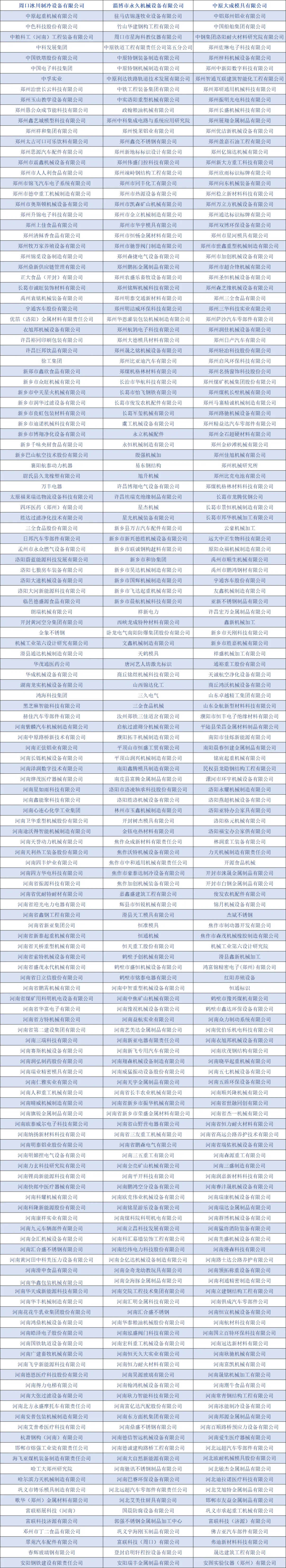 宇通、富士康、比亚迪、郑煤机、铁福来、中船725所、中电27所、713所、通裕重工、河南矿山、第二建设集团、中国一拖、中铝铝业、中铁十二局、平高电气、豫北转向、飞龙汽车、远东传动轴、龙宇实业、平煤神马、南阳二机、新乡航空工业、卫华集团、许继电气、林州重机、中原内配、森源电气、好想你、中原利达、龙丰农机、驼人医疗、安图生物、格力、海飞、三全、思念、安井、双汇、卫龙、比克电池、鹤壁煤化机械、英明电子科技、中粮科工、中孚铝业等覆盖汽车、新能源、军工、医疗器械、家电、食品机械等全领域。