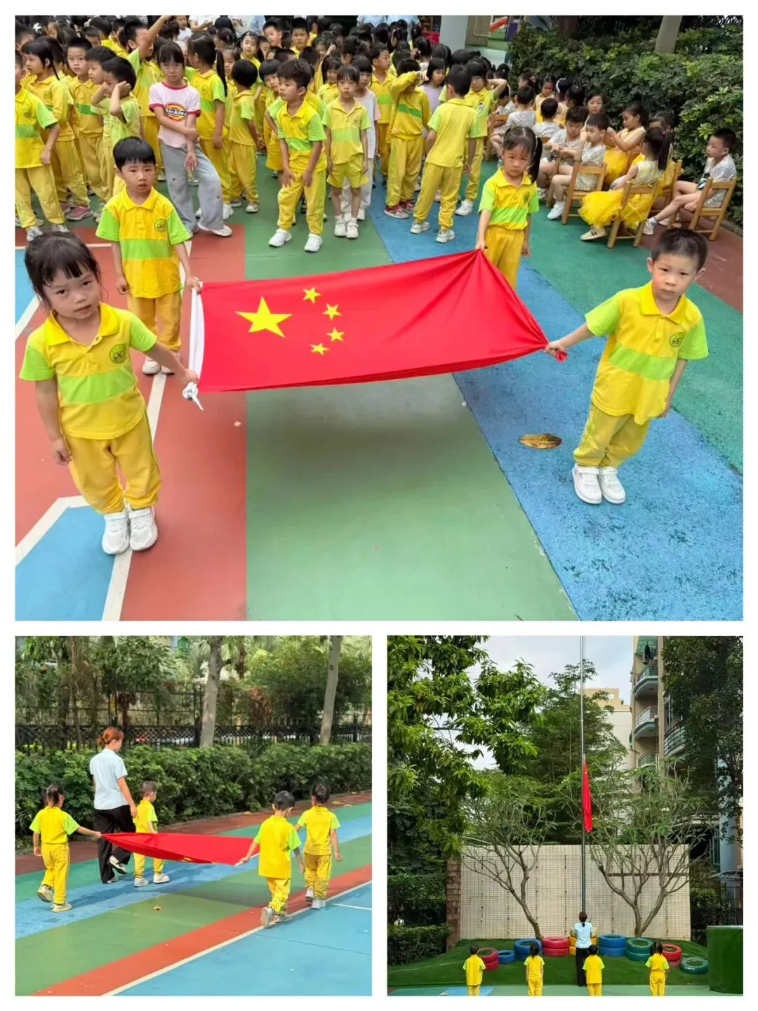 国歌嘹亮,红旗飘扬。孩子们站姿笔直,目光坚定地注视着五星红旗,脸上洋溢着自豪与崇敬,在庄严的仪式中感受爱国情怀。