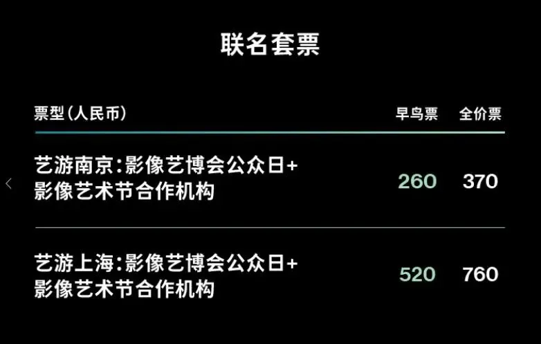 购买“艺游南京”套票可享影像艺博会平日票权益及南京艺术联动权益: