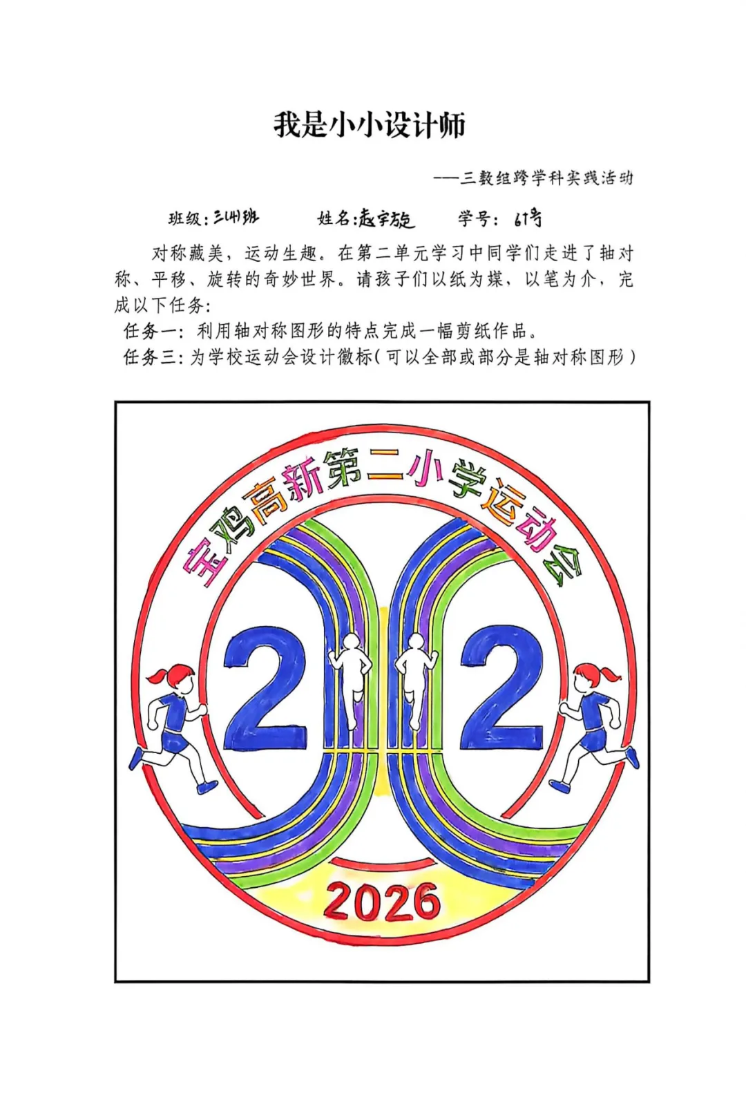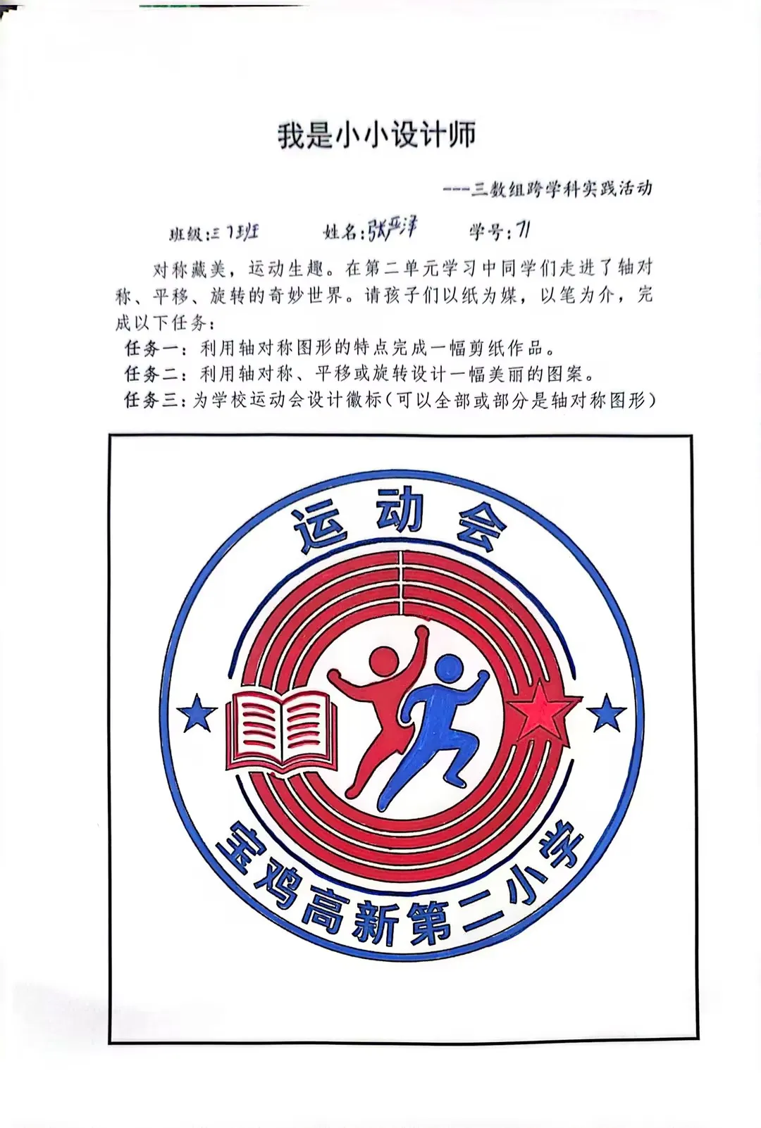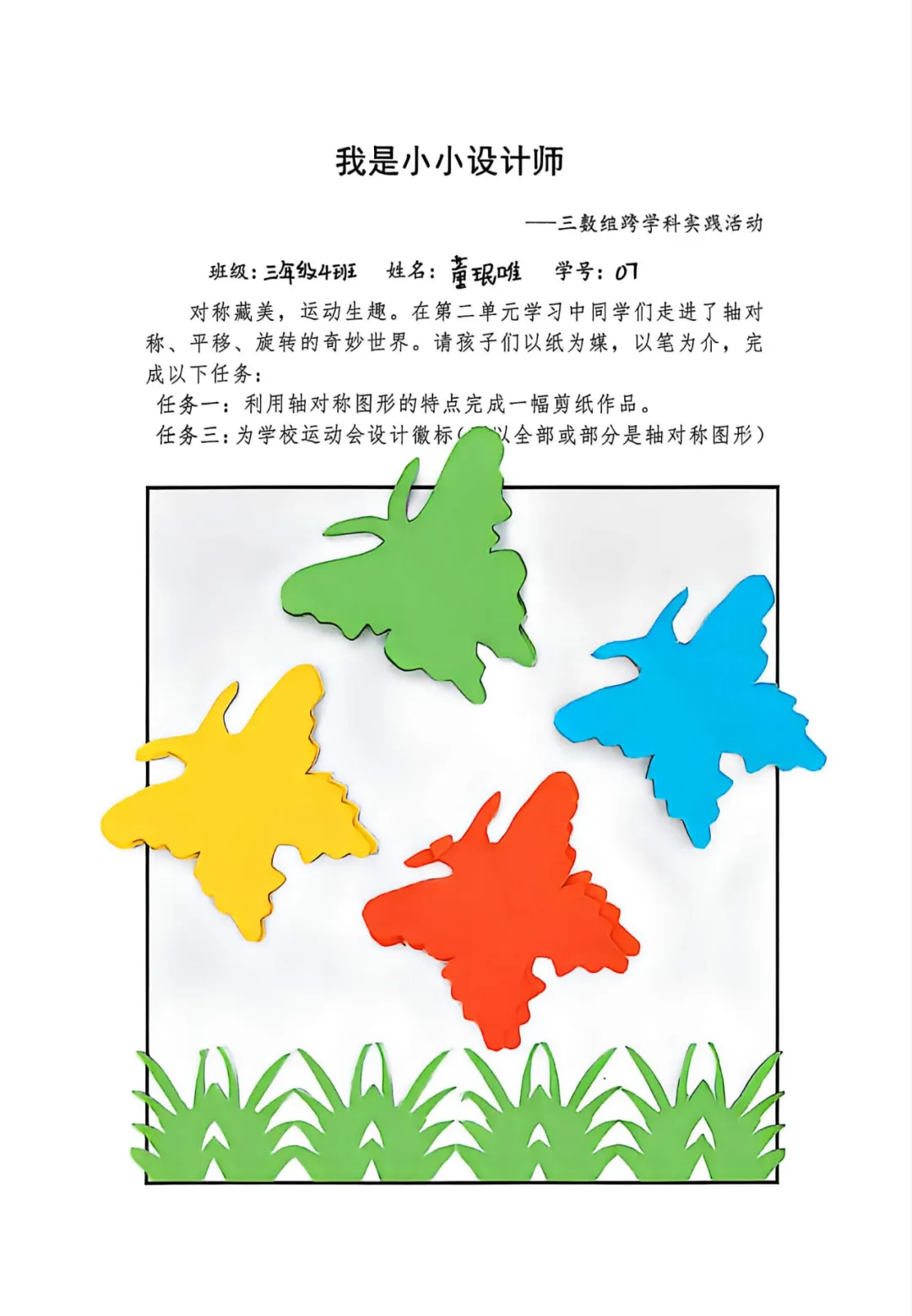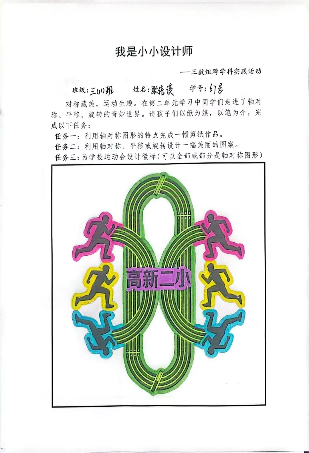 当数学遇上创意,会碰撞出怎样的火花?为帮助学生深入理解轴对称、平移、旋转的数学知识,感受数学与生活、艺术的紧密联系,宝鸡高新第二小学三年级数学学科开展了 “我是小小设计师” 为主题的跨学科实践活动。孩子们以纸为媒、以笔为介,在动手创作中沉浸式体验数学之美,用创意与巧手呈现出精彩纷呈的学习成果。