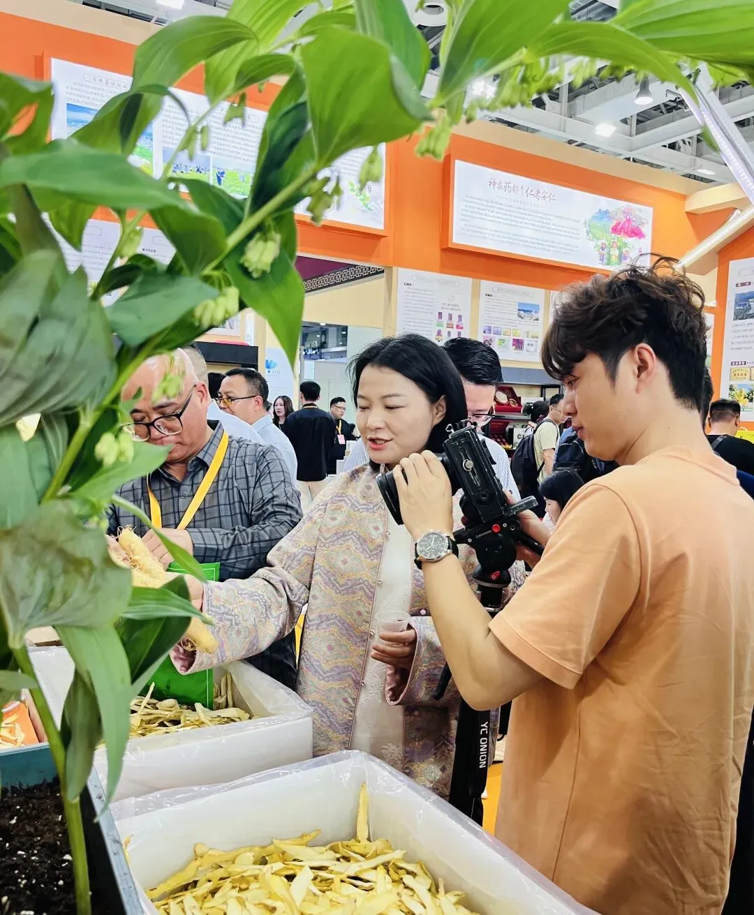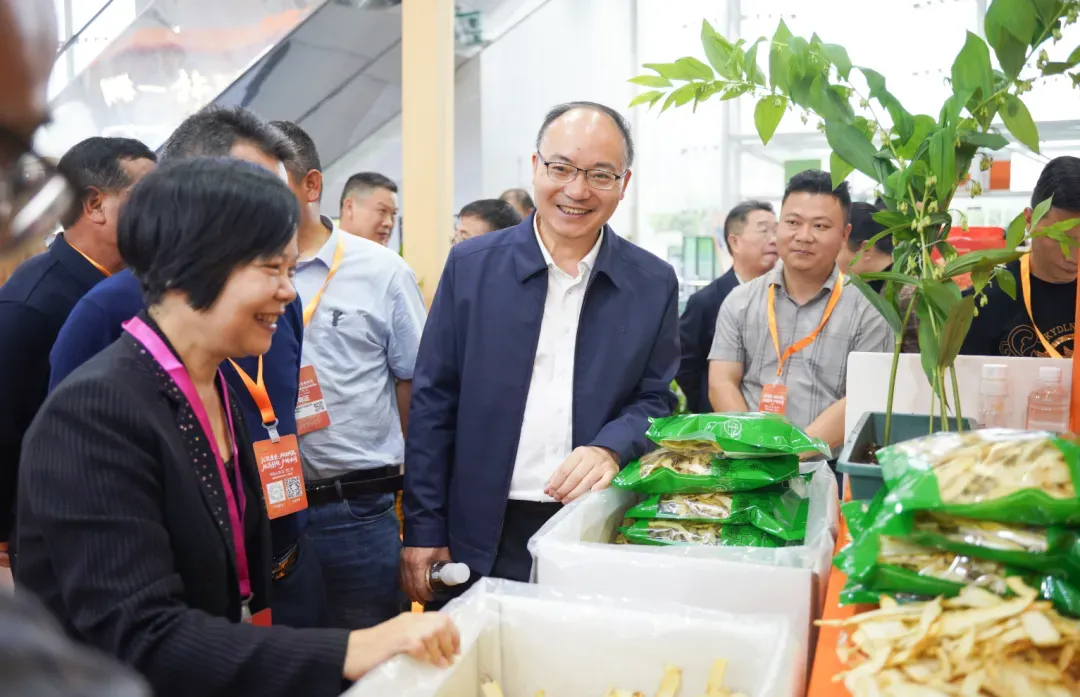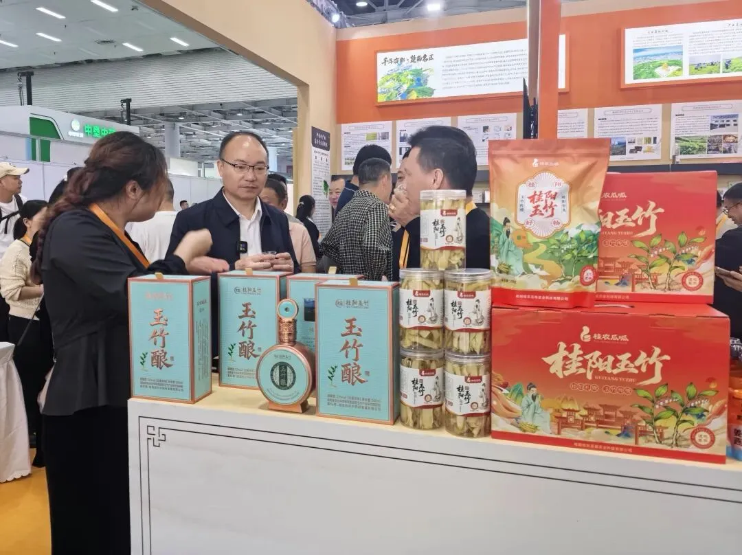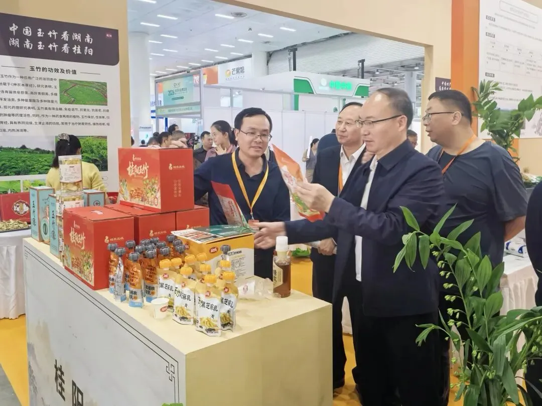 县级领导周平、周卫东、龚茂礼莅临桂阳展区巡馆考察,逐一察看展品详情,与企业负责人深入交流产品研发、市场销售等情况,并充分肯定我县玉竹产业发展成效。