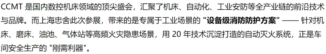 本次展会,上海忠舍将现场展示全系列核心产品,覆盖工业消防的核心痛点: