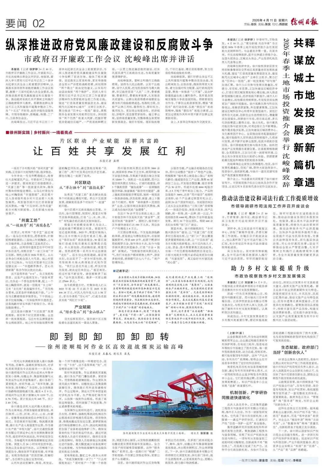 沈峻峰在致辞中说,徐州抢抓国家层面支持苏皖鲁豫省际交界地区高质量协同发展的重大机遇,锚定“打造高质量发展强劲支点、建设现代化区域中心城市”主牵引主抓手,聚力打造“四中心一枢纽”,新一轮发展的“时与势”加速汇聚。徐州人口优势与发展优势叠加,有潜力、有空间、有前景,正加快建设区域经济中心,打造引领区域发展的核心增长极,深入推进新型城镇化建设,经济能级不断提升,城市人口日益增长,刚性需求持续释放,布局投资将坐拥更加广阔的市场腹地。徐州高教优势与科创优势突出,高教资源富集、科创要素聚集,正加快建设区域科创中心和青年发展型城市,谋划打造科创大走廊,创新创业生态持续优化,增量需求加速催生,深耕徐州市场,将在高品质、多元化供给赛道上赢得主动、抢占先机。徐州兼具功能优势与宜居优势,对周边吸引力不断增强,域外需求稳步拓展,正加快建设区域消费中心、文化教育医疗中心,全面推动服务配套提级扩能,城市能级和人居环境品质持续提升,扎根徐州发展,将不断开拓事业版图,收获丰硕的价值回报。徐州厚植政策优势与服务优势,始终把房地产业发展摆在重要位置,注重政策精准赋能、全周期服务,正加力打造一流营商环境,让房企充分享受宾至如归的舒心体验、资源要素的最优配给和精细周到的服务保障。
