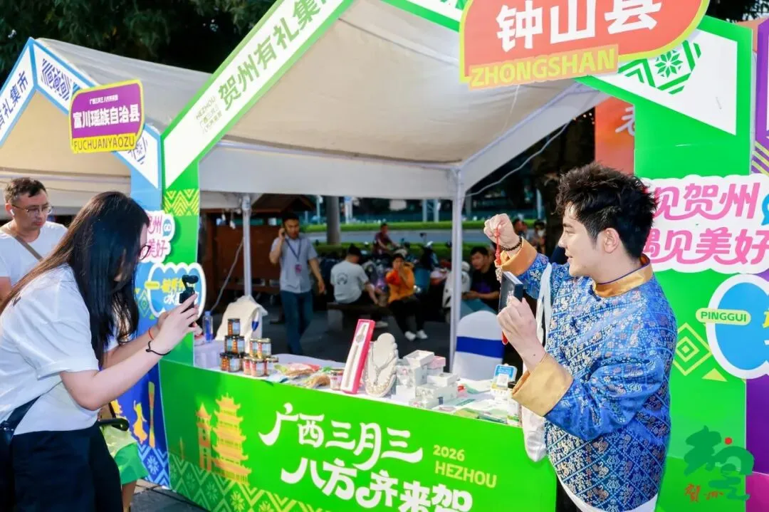 4月8日 - 10日,钟山文旅带着满满的诚意,走进了南宁、柳州、桂林三座城市。在 “广西三月三 八方齐来贺” 的推介活动现场,英家大头菜、钟山话梅、莲子、藤茶、旭平首饰等钟山特产及文创产品一亮相就圈粉无数,现场发放的宣传手册同样大受好评,让三地市民实实在在感受到了来自钟山的烟火气和匠心味~