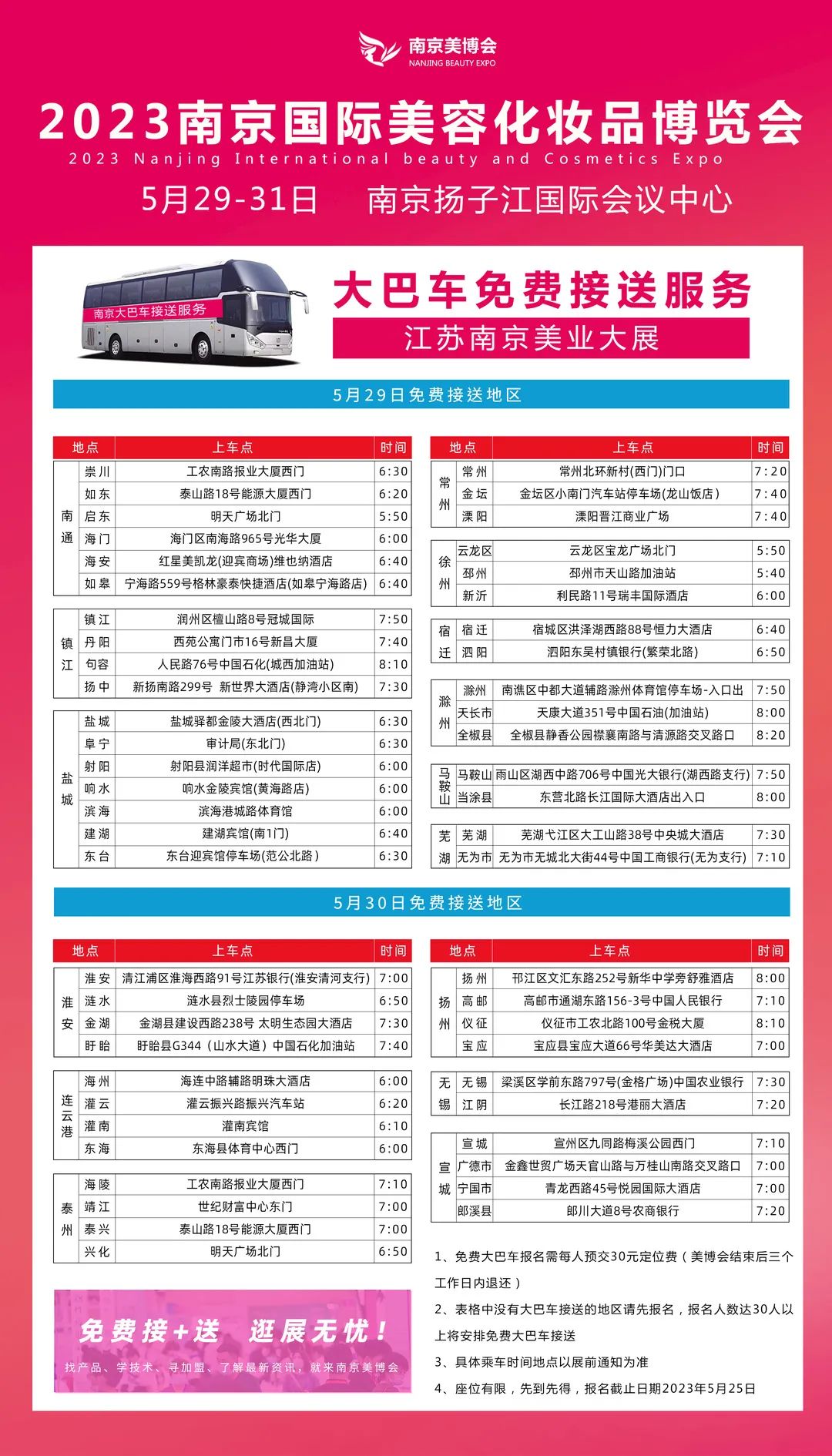 2、如果您所在区域未开通大巴车接送服务,您可以组织联系身边美业同仁,满30人,组委会将在您的城市安排免费大巴车接送。