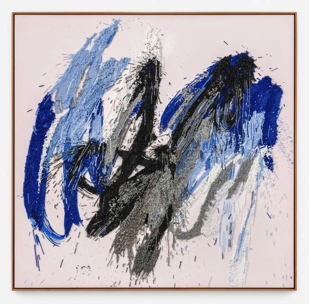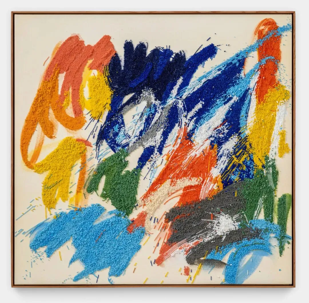 丽莎在严谨概念与探索的背景下,重新开启个人创作,新作散发出一种显而易见的愉悦与自由感。她让媒介自发地表达情感,超越了早期作品中那些耗时耗力的集体创作模式。通过积累和精心营造,她展现了材料的可能性:哪怕是像玻璃珠这样微小、坚硬、惰性的材料,也可以增强绘画效果,赋予画面新的生命力,让其具有鼓舞人心的力量。