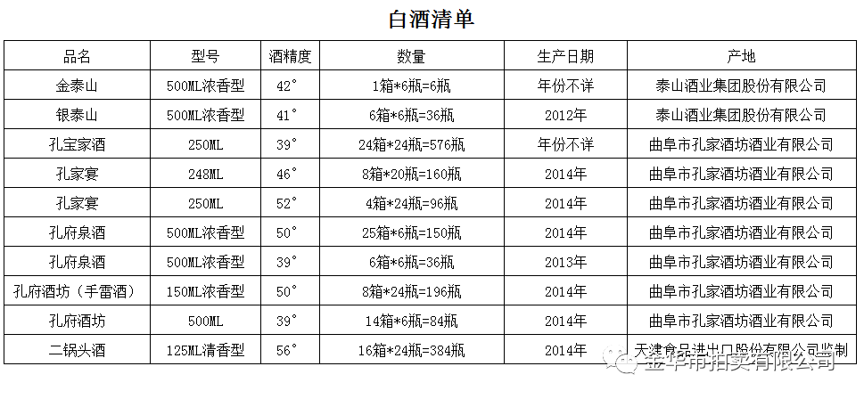 5、库存白酒一批共计112箱(详见白酒清单),整体起拍价2万元,保证金0.5万元。