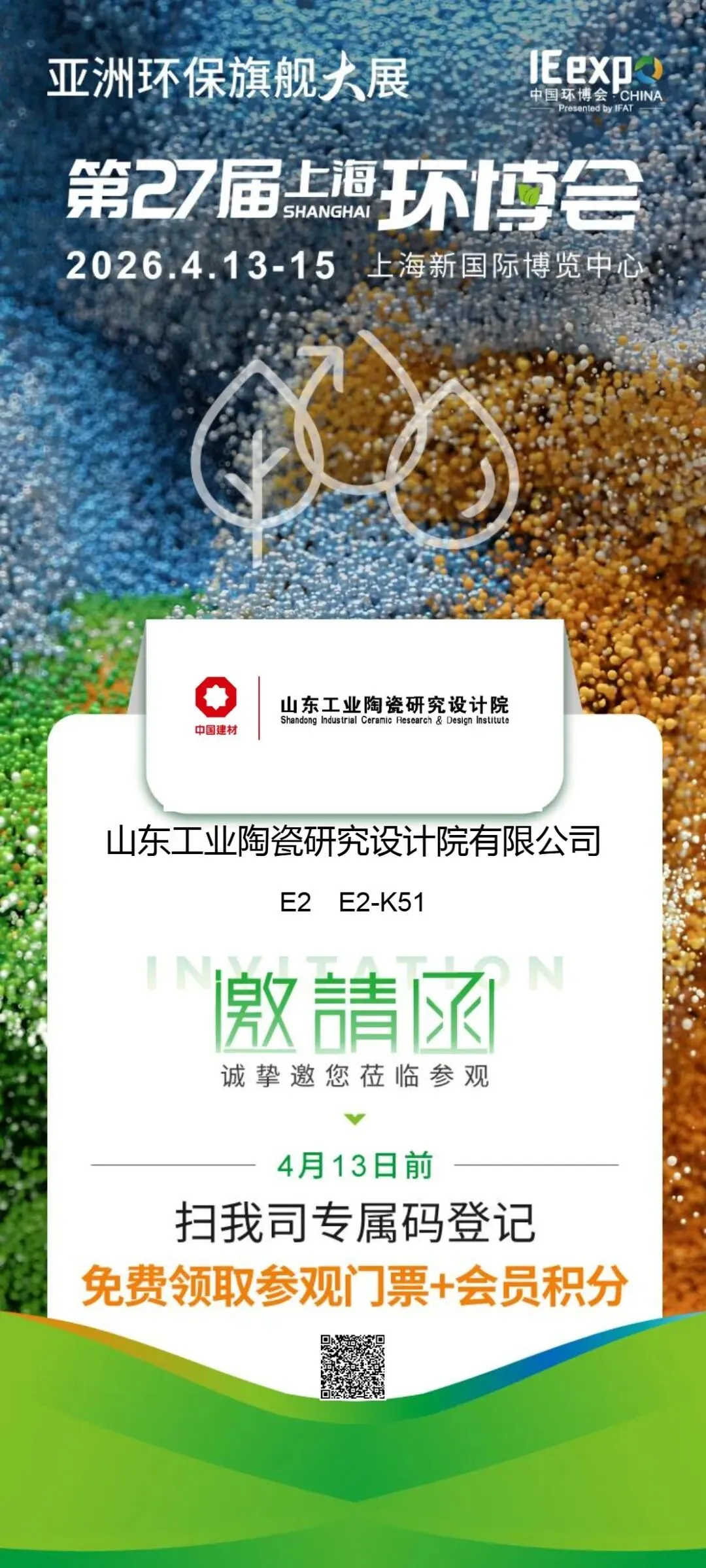 第27届上海环博会将持续至4月15日,诚邀各界朋友莅临山东工陶院展位,参观交流、共话合作、共促环保产业高质量发展。