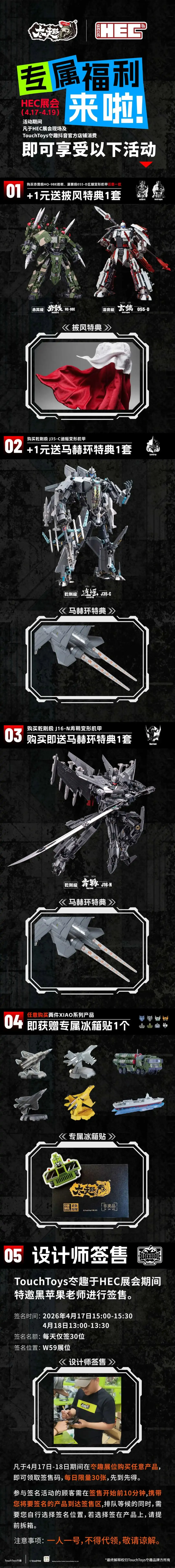 HEC 展会(4.17-4.19)活动期间,凡于 HEC 展会现场及 TouchToys 冭趣抖音官方店铺消费下单,即可获取多重福利!