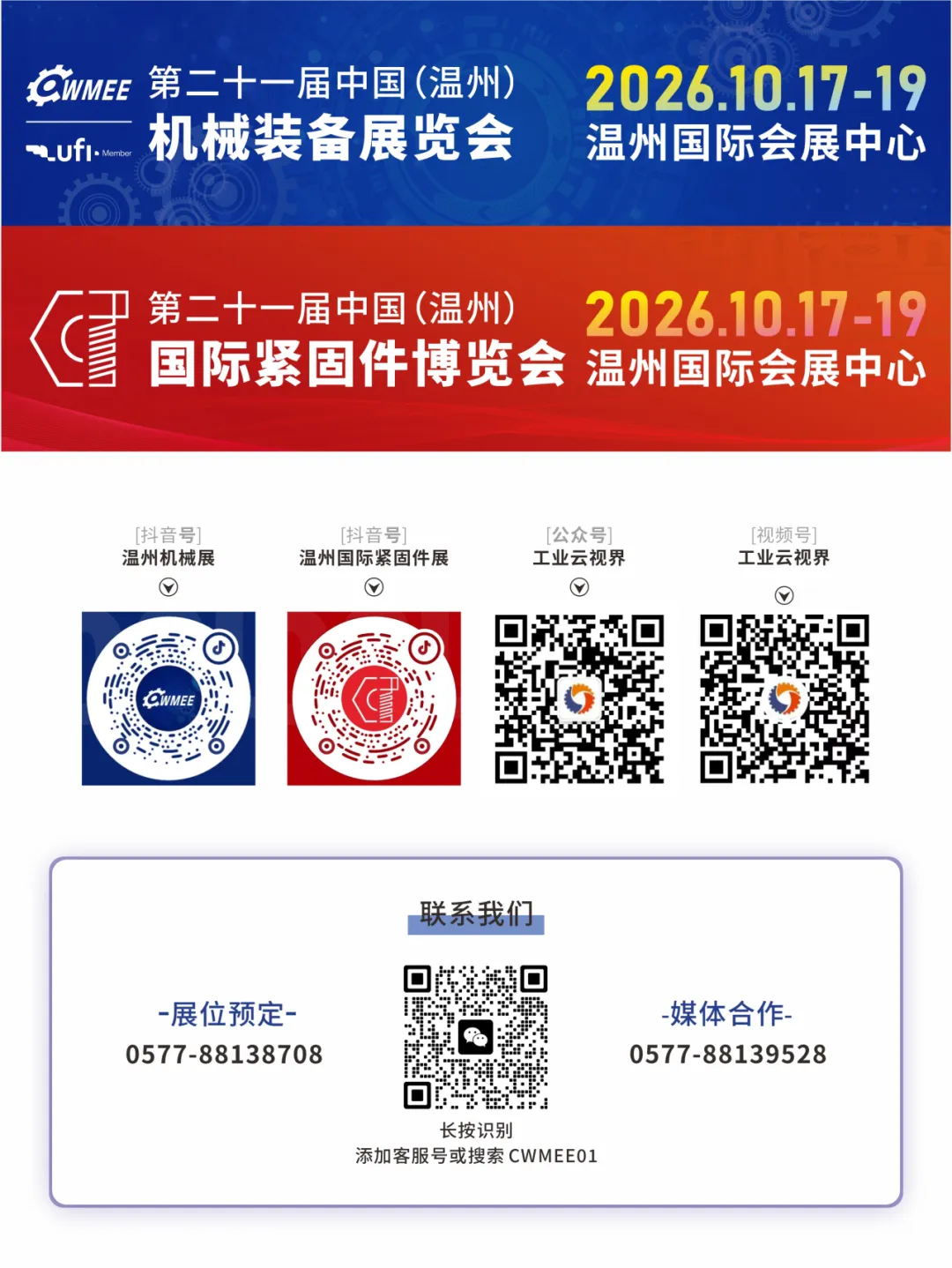 2026年10月17—19日,温州国际会展中心,第二十一届中国(温州)机械装备展览会将盛大启幕。 作为UFI国际认证的品牌展会,这里将汇聚全球顶尖的工业母机、智能机器人、激光精密加工及数字工厂解决方案。精准匹配温州制造产业的设备升级需求。