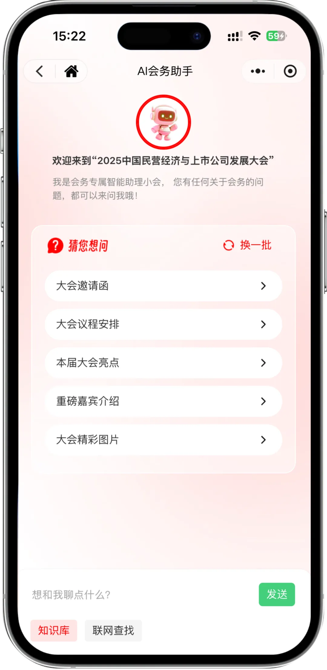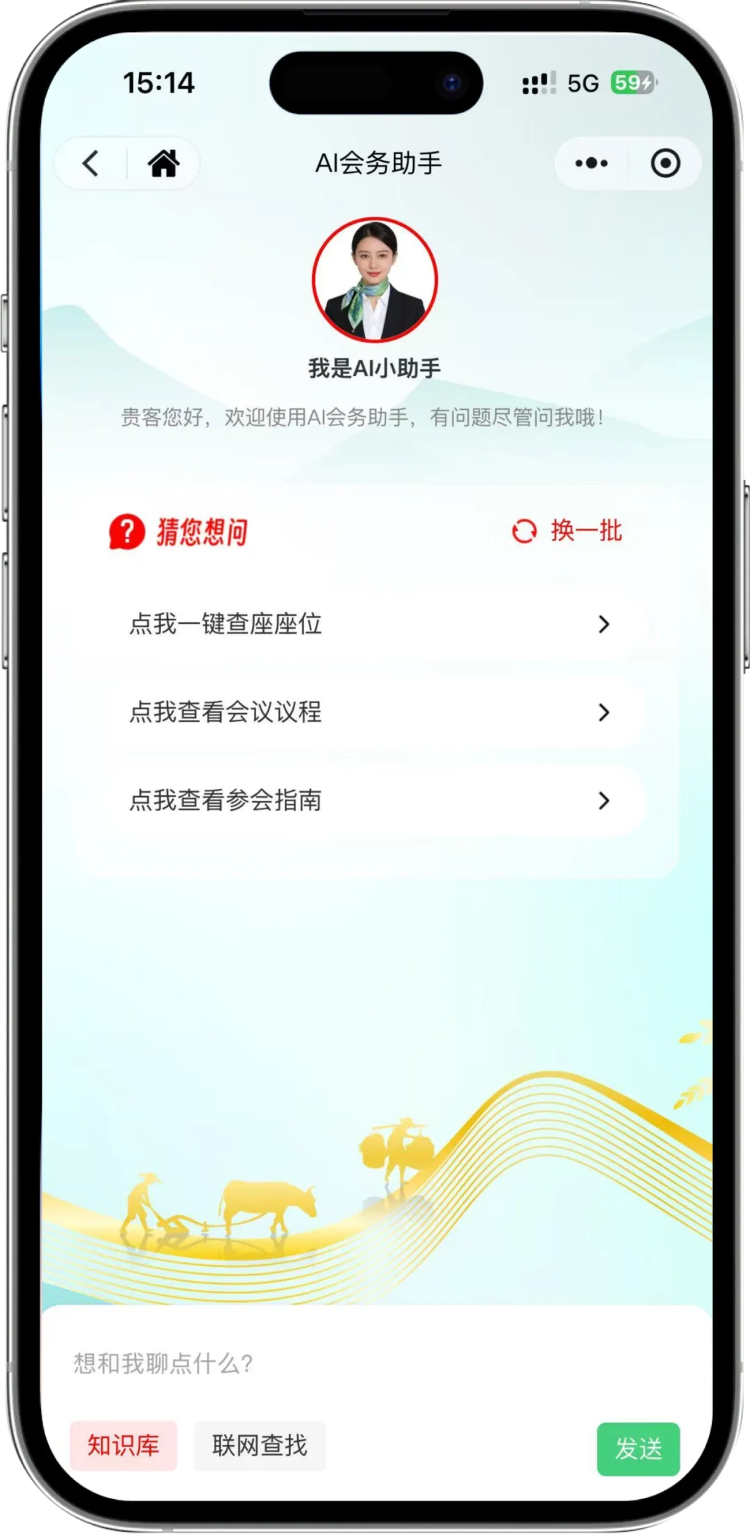 以对话方式自动回答时间、地点、座位、交通、议程等高频问题,解放人力,提升体验。