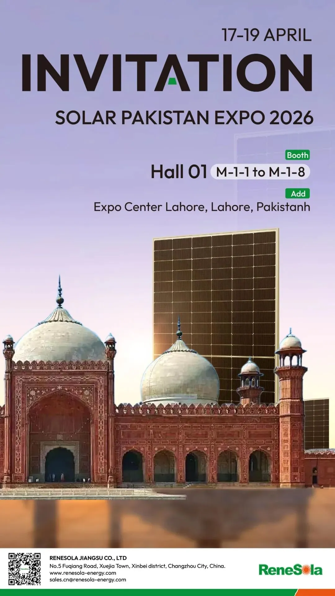 展会预告 | ReneSola邀您共赴4月17-19日巴基斯坦国际太阳能展!