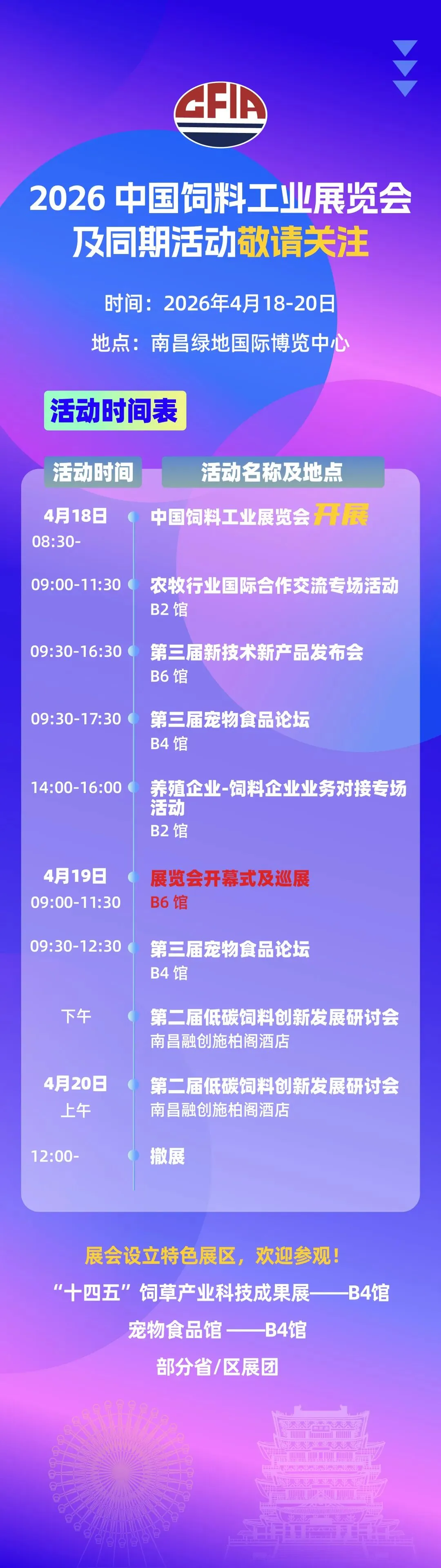 我司将参加于2026年4月18—20日在南昌绿地国际博览中心举办的2026中国饲料工业展览会,展位号为B6S168。