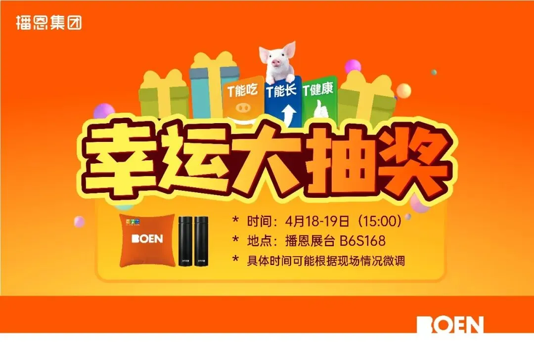 作为母仔一体化营养专家,播恩深耕母仔营养研究与创新实践。此次展会,我们将在B6S168播恩展位,全面展示播恩母仔一体化营养最新成果与实战方案,以科技赋能养殖,助力客户提质增效、稳定盈利。