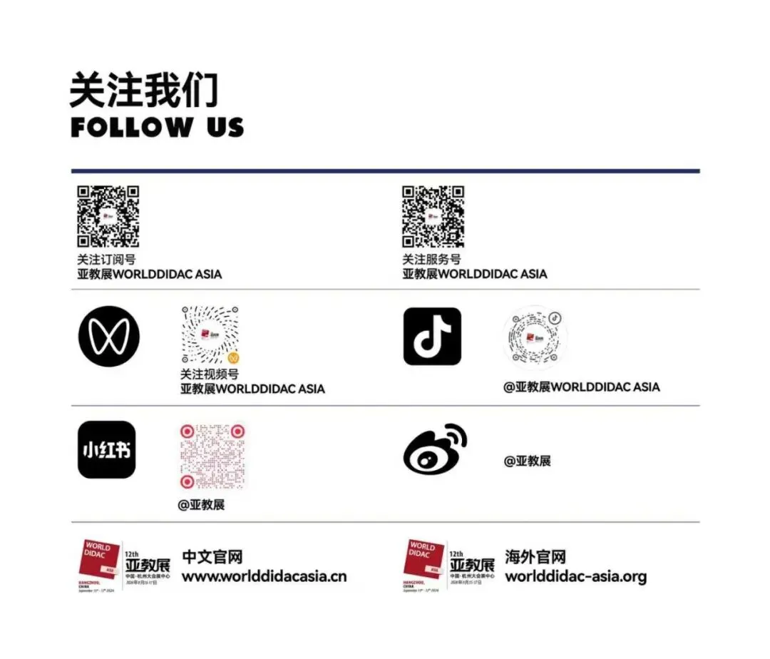 第十二届亚洲教育装备博览会(WORLDDIDAC ASIA 2026)将于2026年9月15日-17日在杭州大会展中心举行。展会由世界教具联合会、中国教育装备行业协会及米奥兰特国际会展共同主办,致力于搭建连接全球教育科技供需双方的专业平台。本届展会规划展览面积达60000㎡,预计将吸引500余家参展企业及60000+专业观众到场。