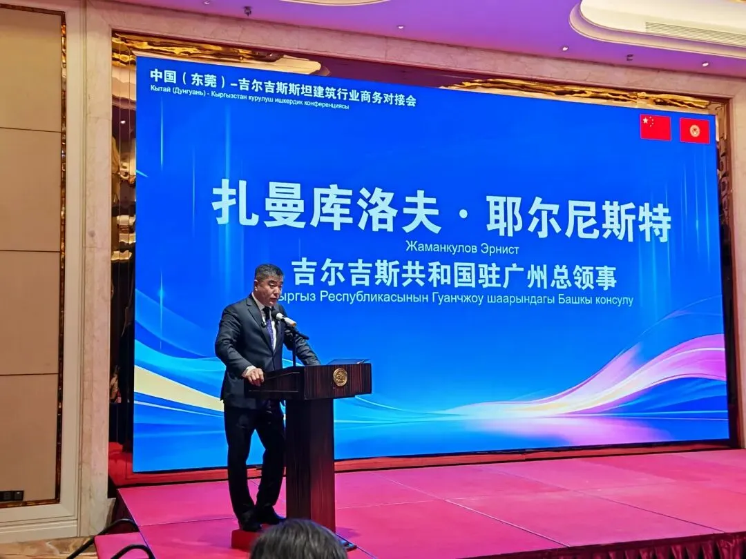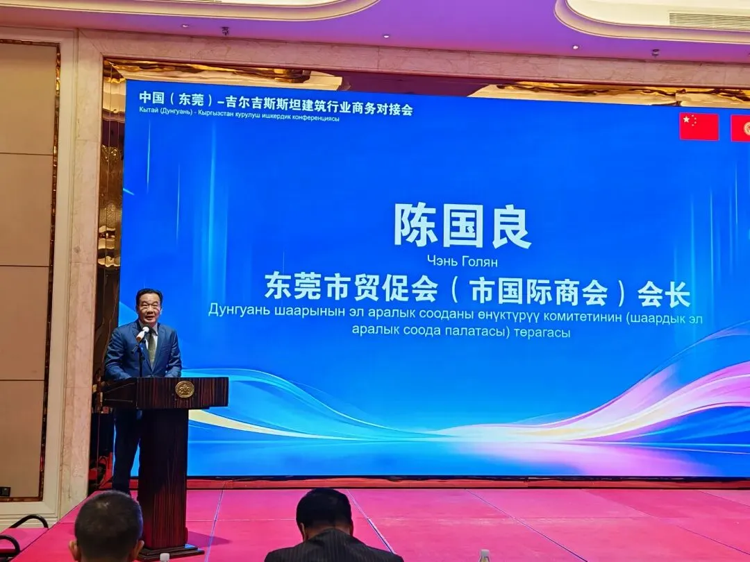 4月13日下午,中国(东莞)——吉尔吉斯斯坦建材行业采购对接会在东莞康帝国际大酒店顺利举办。本次活动由东莞市贸促会、吉尔吉斯共和国广州总领事馆、中亚广东总商会联合主办,旨在深化东莞与吉尔吉斯斯坦两国建筑领域经贸交流,搭建精准高效的跨境商务合作平台,助力两地建筑及相关配套产业优势互补、共赢发展。东莞市暖通空调行业协会作为本次活动协办单位,积极组织协会会员企业全程参与,为推动两地暖通空调及建筑配套产业合作搭建了坚实桥梁。