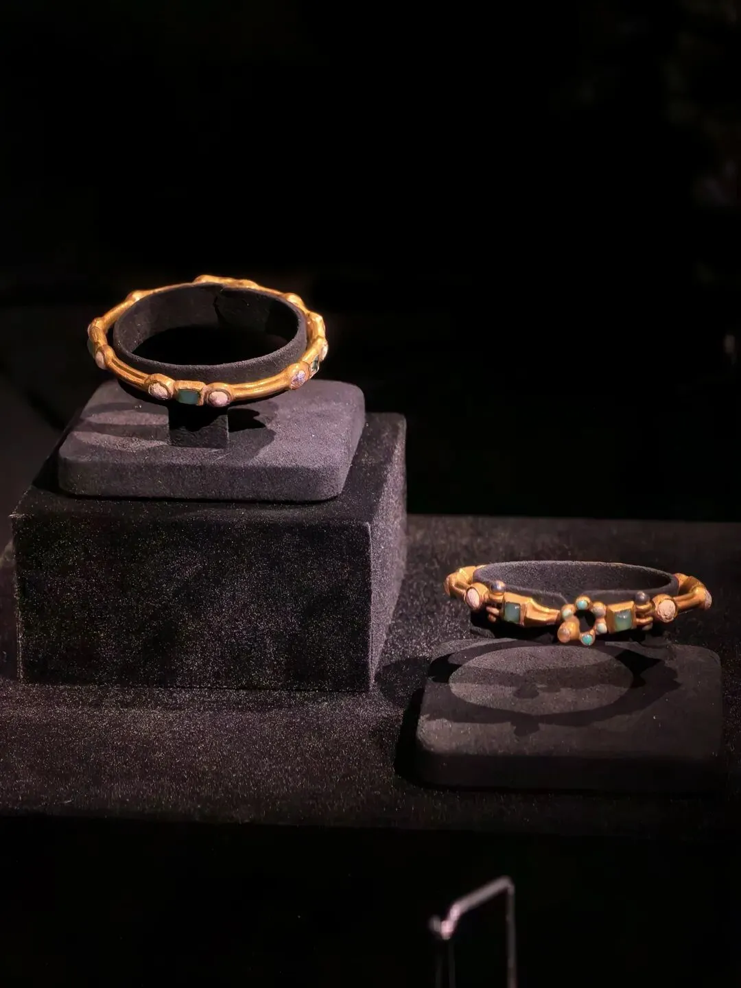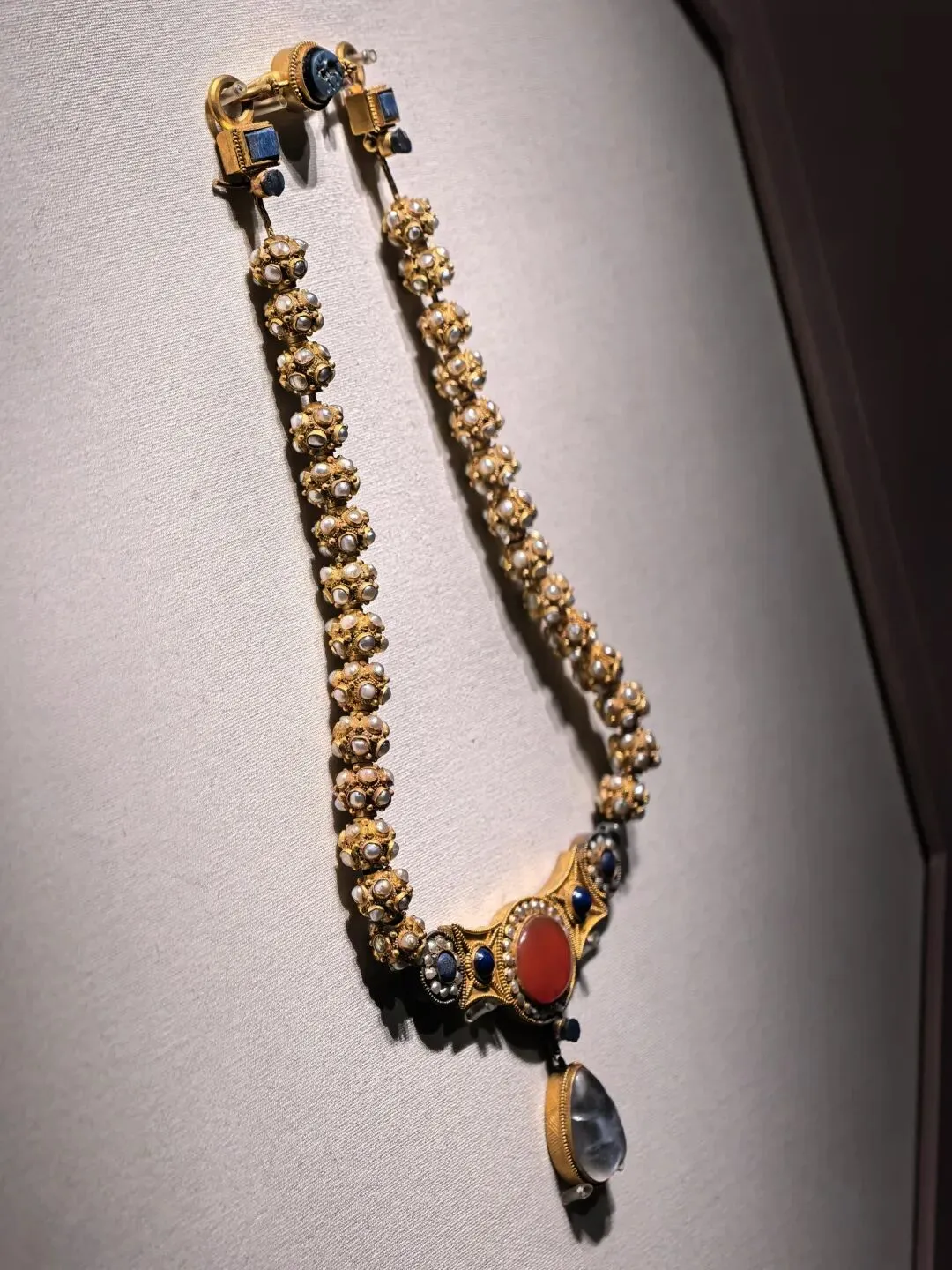 国博最美项链必看。虽然没列入195,195重在历史价值,嵌珍珠宝石金项链重在精美和亲情。隋朝贵女的也爱进口首饰,项链美到细节无数,也是《古代中国基本陈列》中必看展品,这次放入了李静训特展。