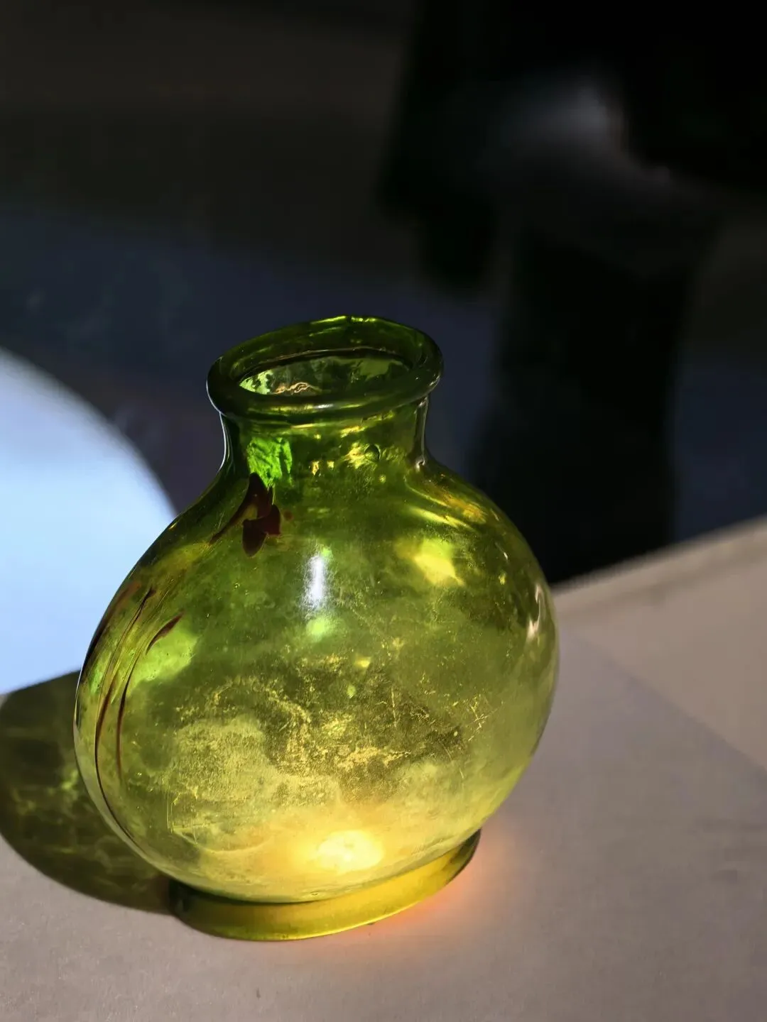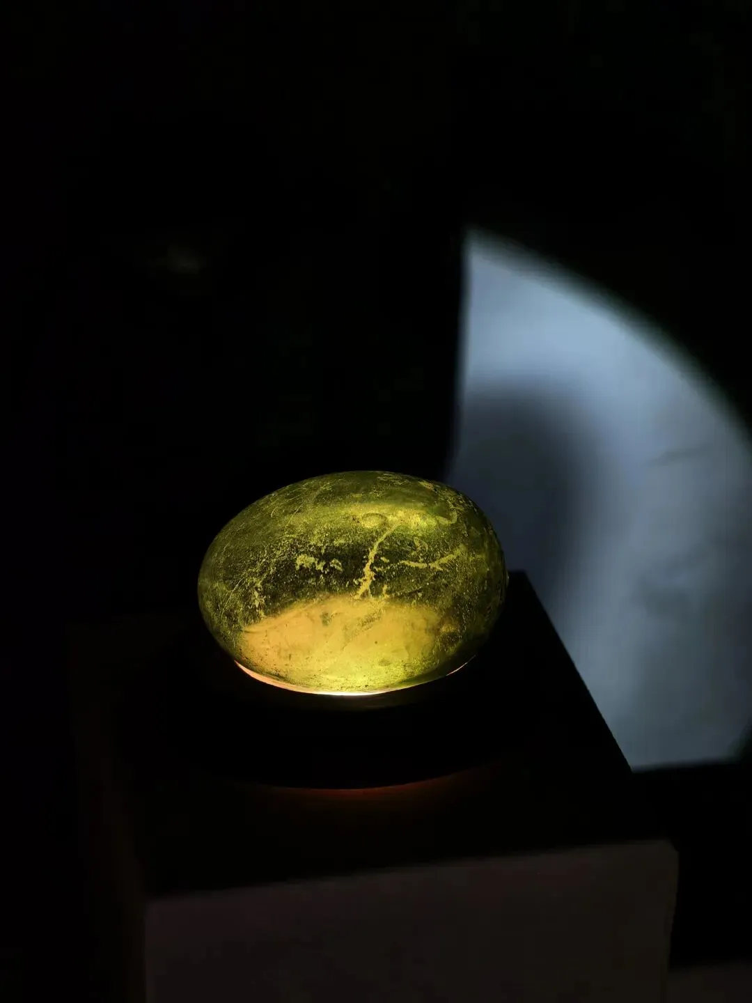 不打光,真看不出啥好看,不就是个啤酒瓶材质?玻璃现代人看起来稀松平常,但在古代异常珍贵,现在不是都戏说,如果给个机会穿越到古代,就带点玻璃瓶、玻璃珠的回去。隋代的玻璃,由于工艺难,依赖进口,主要用于佛教圣物和皇室珍藏,比黄金、宝石更珍贵,顶奢级别!