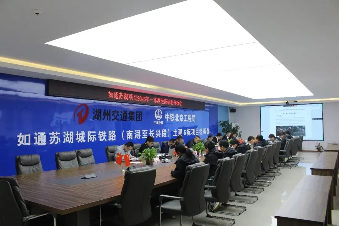 为全面复盘项目经营管理成效,靶向破解发展难题,压紧压实攻坚责任,4月11日,公司召开如通苏湖项目2026年一季度经济活动分析会,全面研判项目经济运行态势,周密部署下阶段重点工作,全力推动项目提质增效、稳健发展。公司党委书记、执行董事瞿坤,总经济师、副总经理张明,总工程师庞洪贤,副总经理王大奇出席会议,公司相关业务部门负责人、项目领导班子成员及各部门负责人参加会议。会议采取“现场+视频”的形式召开。