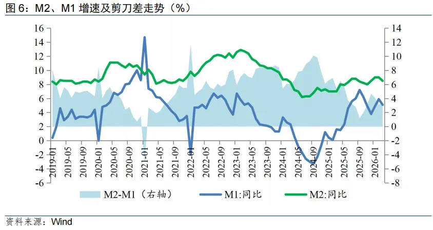 三、M2和M1增速边际回落,M2-M1剪刀差仍在低位