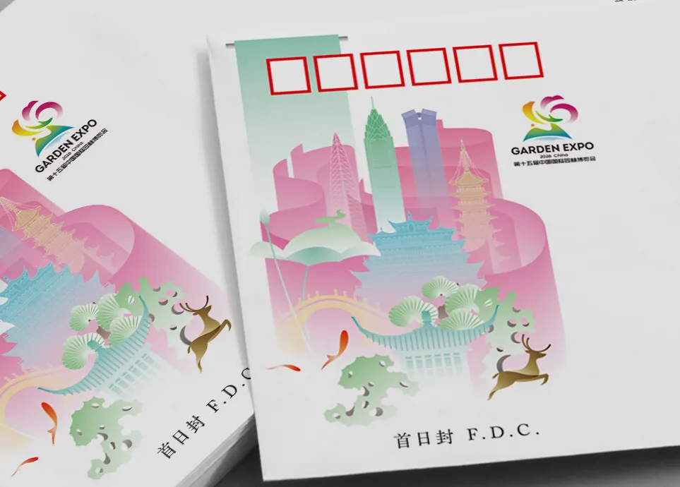 中国集邮有限公司将同步发行《第十五届中国国际园林博览会》纪念邮票首日封。首日封以2026年园博会在温州举办为契机,采用扁平化插画语言,凝练呈现温州城市风貌与园博主题的有机融合。