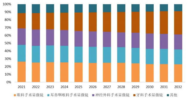 就产品类型而言,目前眼科手术显微镜是最主要的细分产品,占据大约25%的份额。