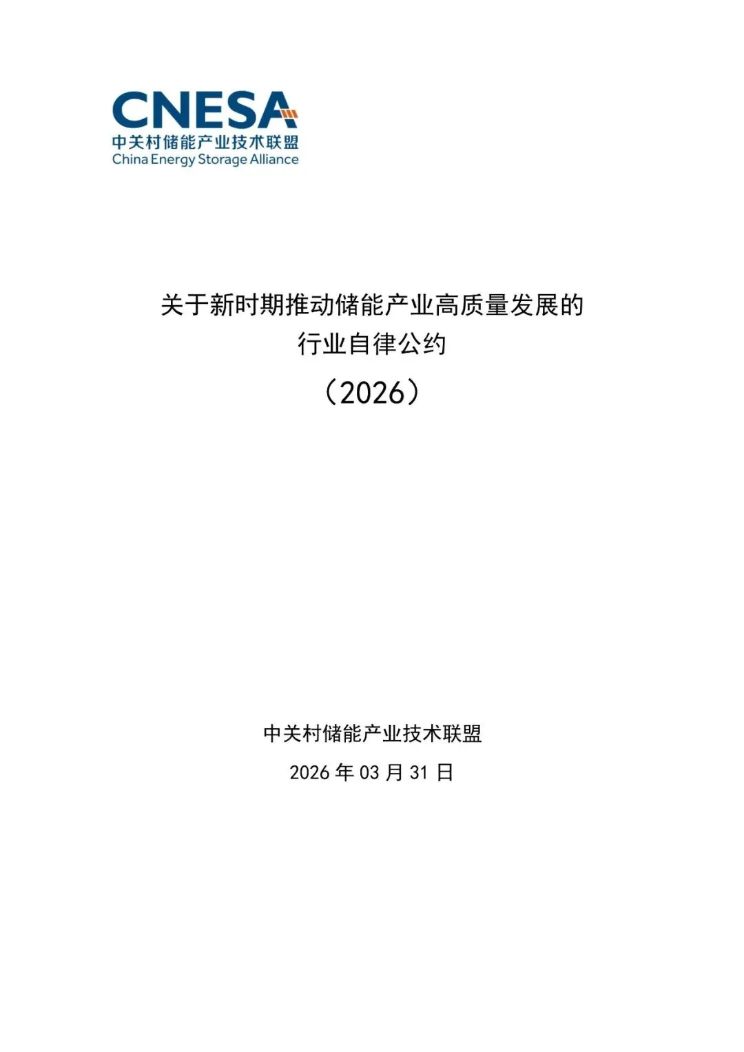 为深入落实全国统一大市场建设要求,规范储能行业发展秩序,中关村储能产业技术联盟在第十四届储能国际峰会暨展览会ESIE 2026期间正式发布了《关于新时期推动储能产业高质量发展的行业自律公约》。