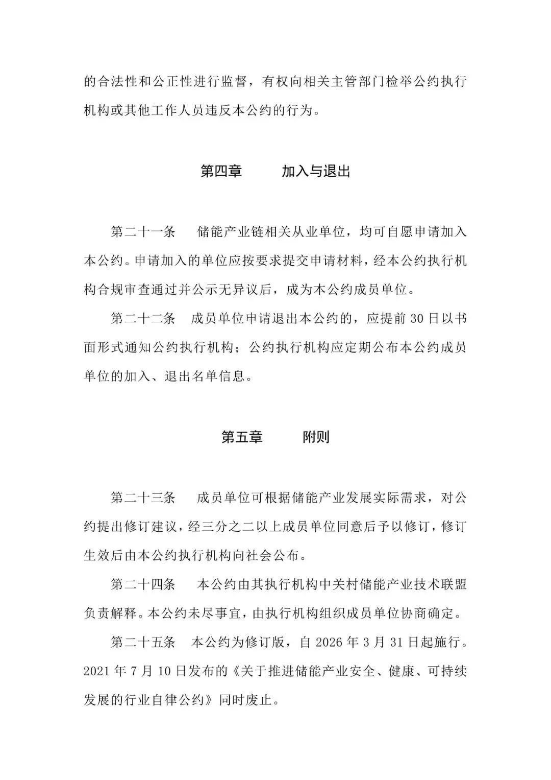中关村储能产业技术联盟作为本公约的执行机构,负责组织实施本公约,建立健全行业自律监测体系,配合政府监管部门开展行业监管调研等支撑工作。