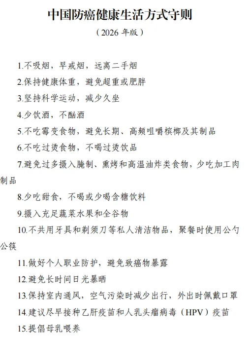 最近,国家卫生健康委正式发布了《中国防癌健康生活方式守则》——它不是晦涩难懂的医学论文,也不是夸大其词的养生噱头,而是一本人人能看懂、照着做就能降低患癌风险的“官方防癌说明书”。(国家版“防癌说明书”来了!第一条就有很多人没做到)