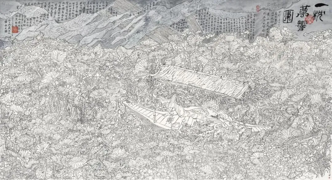 它既朝向时间,在四季流转与草木枯荣中,回首来时的路,凝结成“太阳下的风景”;也朝向生活,以日课般的画笔捕捉世间百态,日日换新;同时亦展现创作本身,文叙画,画衬文,在“无法无天”的逍遥游中,形成了自我独有的艺术风格。