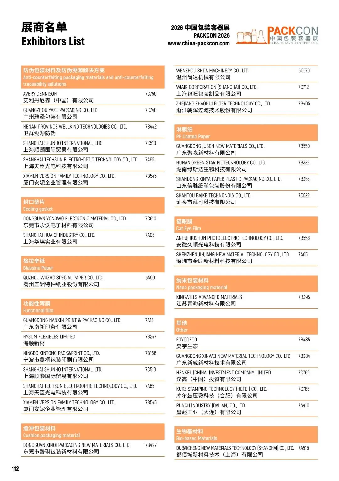 向下滑动查看所有展商名录