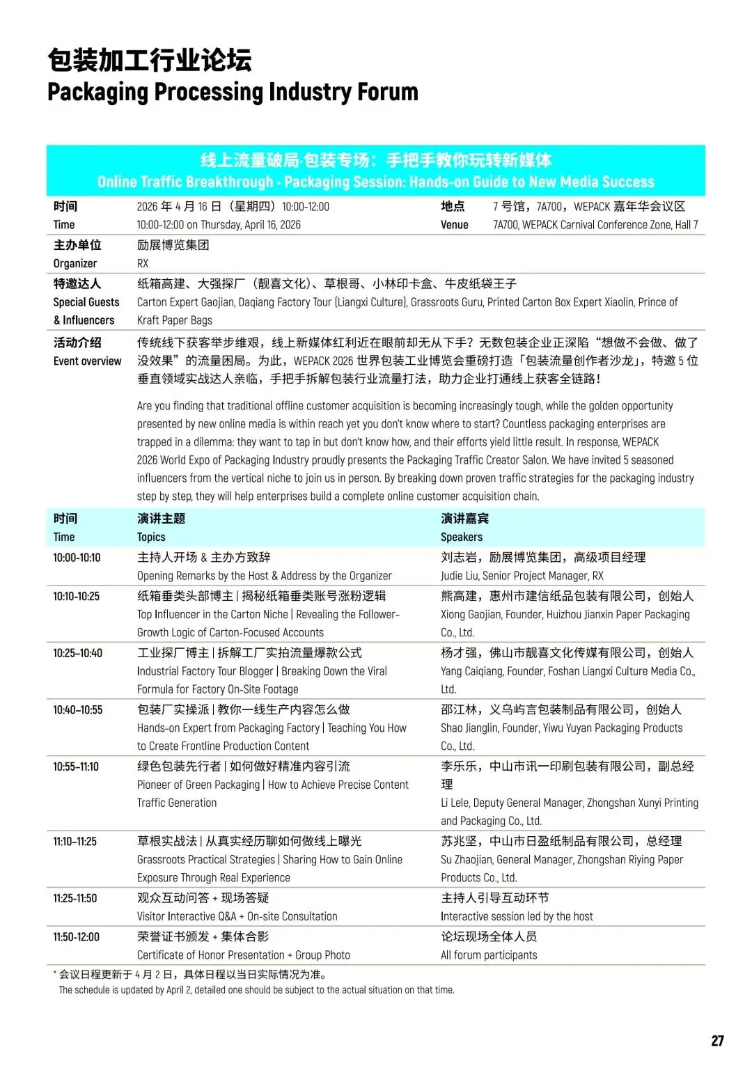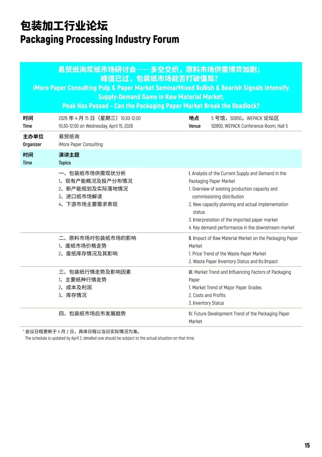 WEPACK 2026亮点远不止技术与设备,一系列精彩论坛活动等你深度参与!这里是全球包装行业的思想碰撞地,你能邂逅行业领袖,解锁跨境商贸关键密码,切身感受前沿趋势与实践方案的同频律动。每一场论坛都潜藏商机,别错过这难得契机,快来现场携手共筑包装行业新未来!