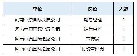 具体招聘岗位、招聘人数详见附件:河南中原国际会展中心有限岗位一览表.pdf