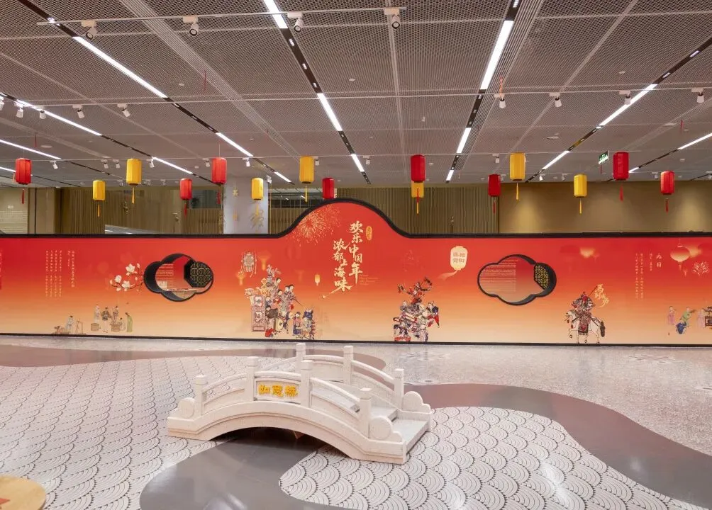 春节主题展通过三大板块生动呈现传统沪上春节的独特风貌,充分展现上海风情与时代气息。春节主题造景区板块沉浸式还原老上海年俗场景,设有“猜腊八粥料”“送灶王”“扎老虎柏子花”“抽福卡”“年画拓印”“接财神”“走三桥”等趣味互动装置,让市民在亲身体验中重拾地道上海年味。