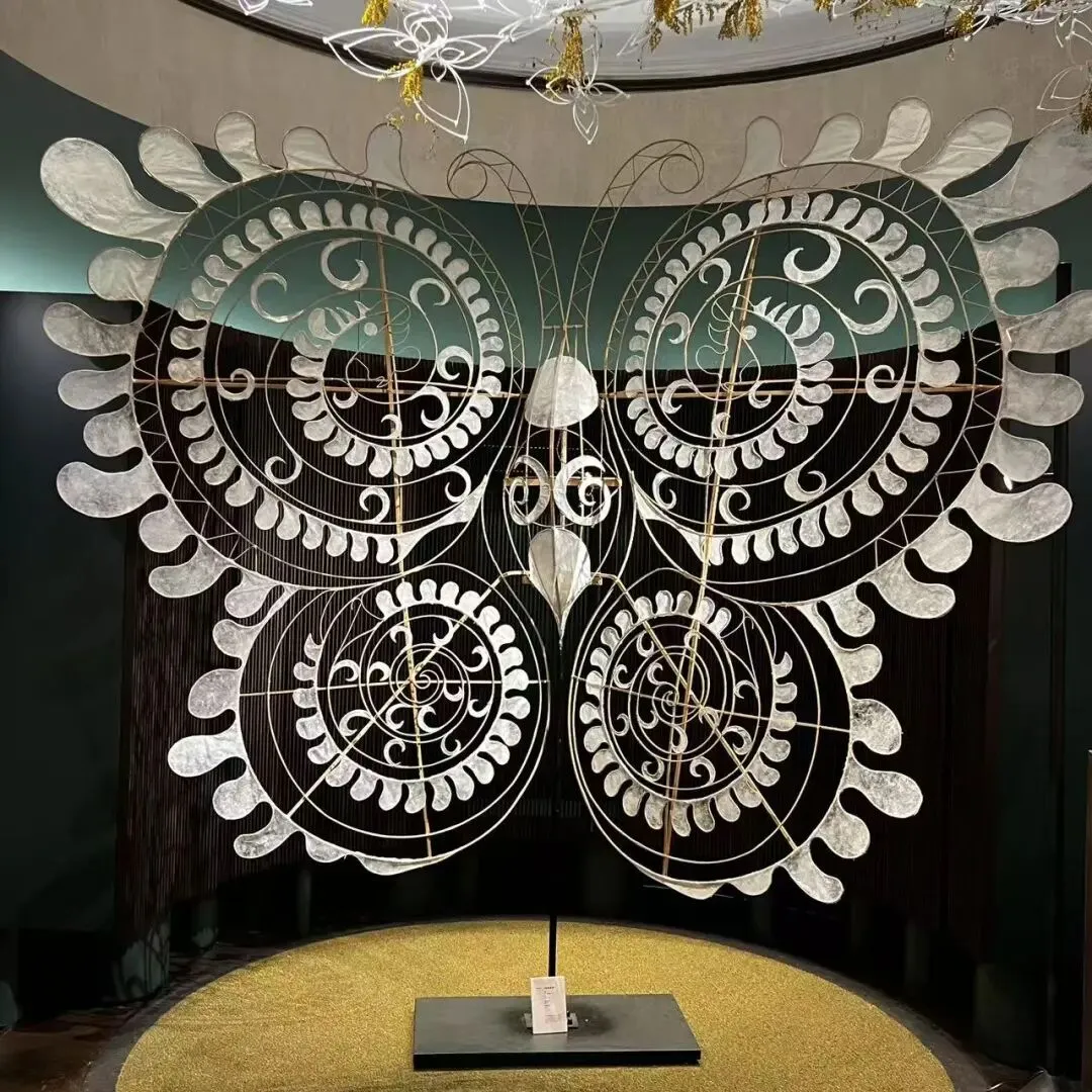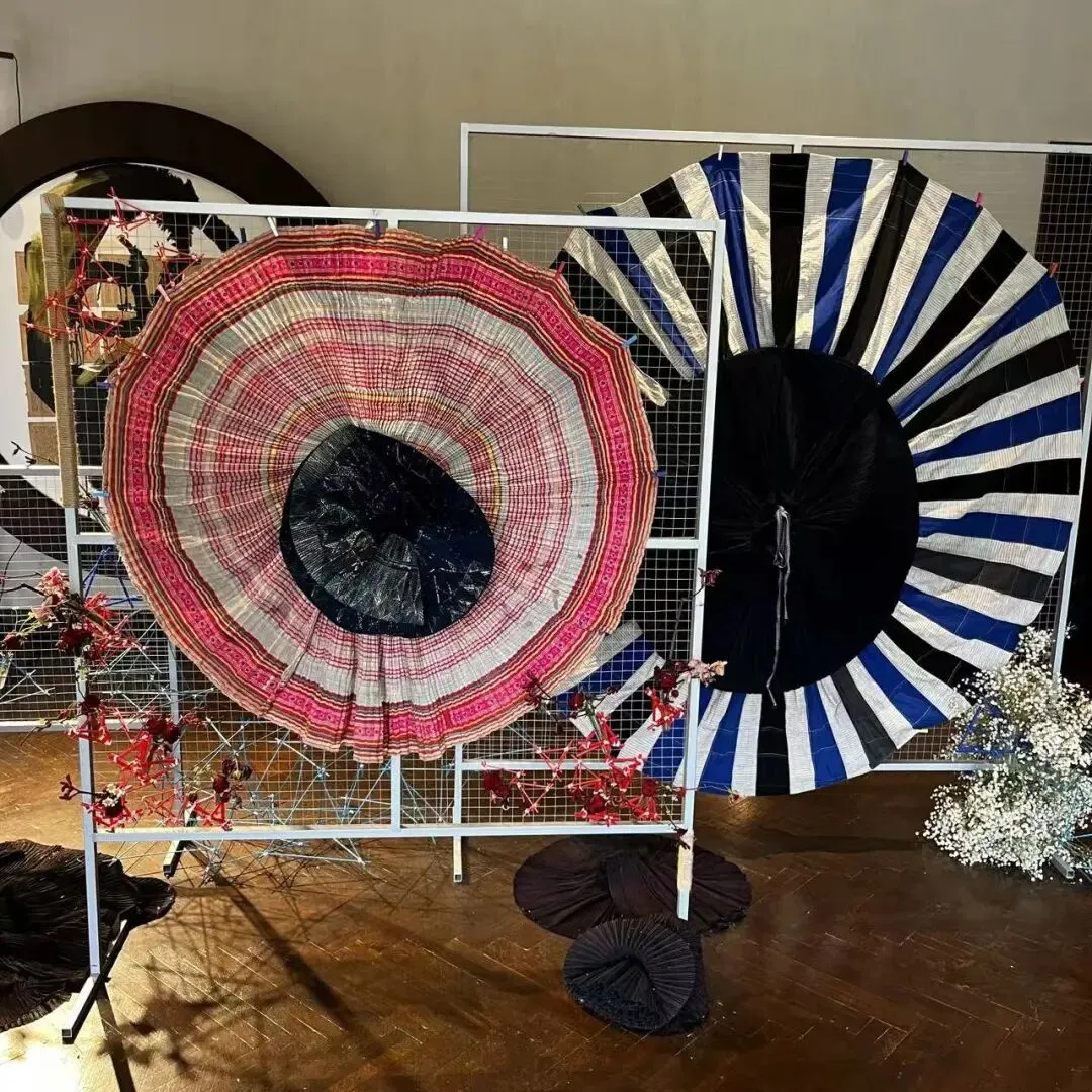苗语中的“妹榜妹留”意为“蝴蝶妈妈”,是苗族神话里诞生于枫树心的创世之母,象征着天地初开、孕育万物的生命本源。作品以竹编为基底,用手工羊皮纸塑造出蝴蝶的图腾造型,每一张羊皮纸都遵循传统造纸工序,呈现出天然的肌理与韧性,与竹编的经纬纹理相互映衬,让古老的创世信仰以当代装置的形式,成为可沉浸式感知的文化符号。