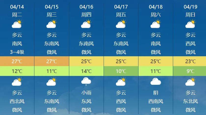 预计14日各地晴,西北风4级左右,风口风力7级左右,气温明显上升。15-16日各地晴转多云,平原部分区域有浮尘,偏东风4级左右,风口风力7级左右,偏东局地伴有扬沙或短时沙尘暴,气温有些下降。未来三天平原城区最高气温28℃左右,最低气温9℃左右。