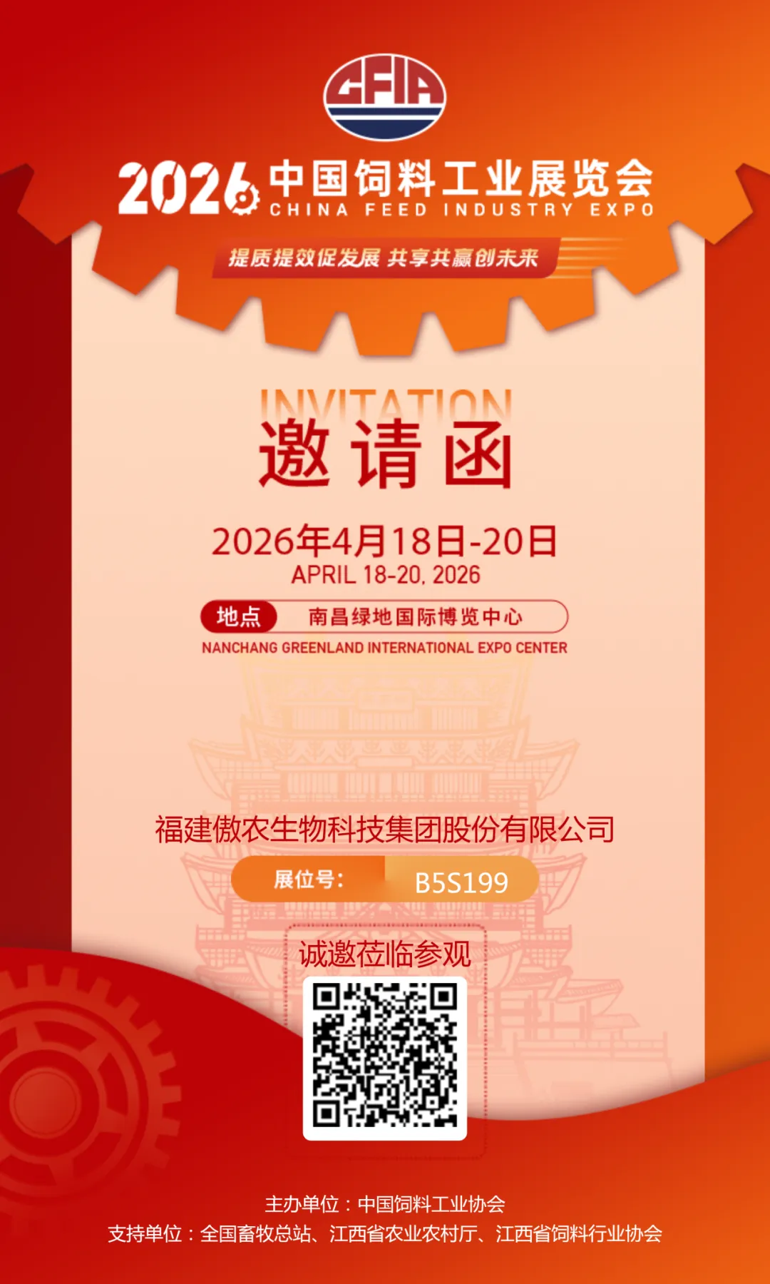 2026年4月18日至20日,备受行业瞩目的2026中国饲料工业展览会将在南昌绿地国际博览中心盛大举办。展会期间,傲农将携全新饲喂模式方案及市场广泛认可的核心产品亮相,诚邀各界同仁莅临B5S199展位,在春日氛围中探讨产业提质增效的新路径,共商共享共赢的新未来。