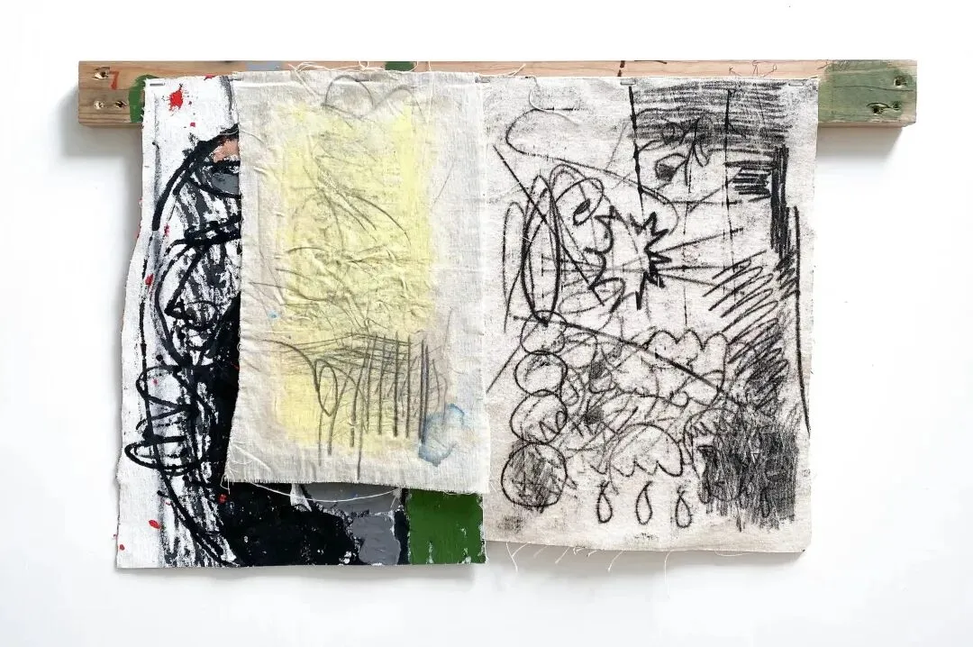 布面丙烯与综合材料,木棍,35.5 x 58.4 cm